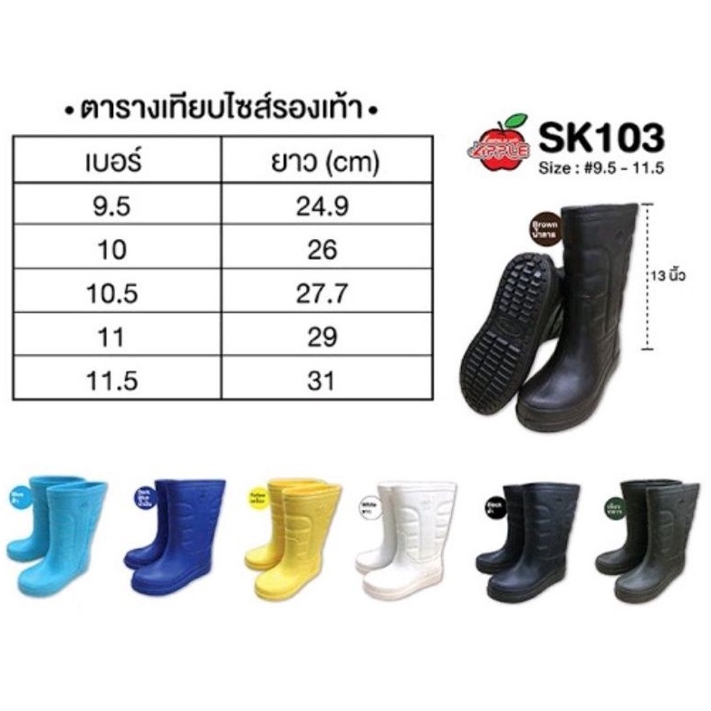 💥ส่งฟรี💥Apple บูทกันน้ำ รุ่นSK103 เนื้อไฟล่อน เบามาก สูง13" ไซส์9-12.5