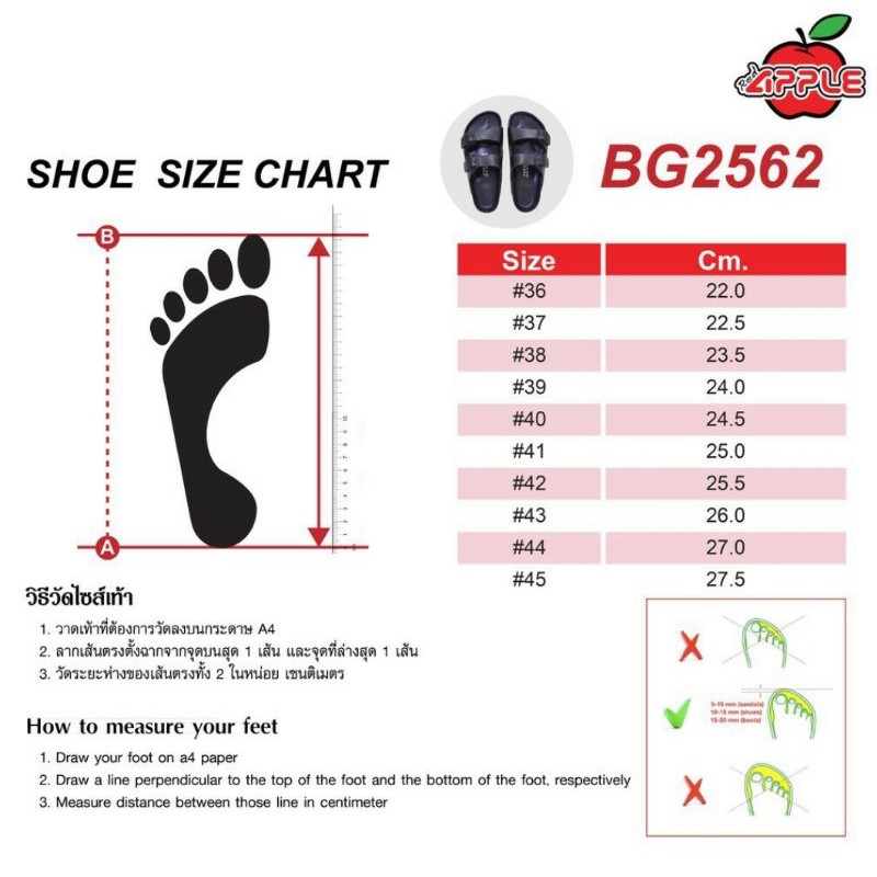 Red apple รุ่นBG2562 ครบทุกสี มีทุกไซส์ รองเท้าเตะทรงBirken