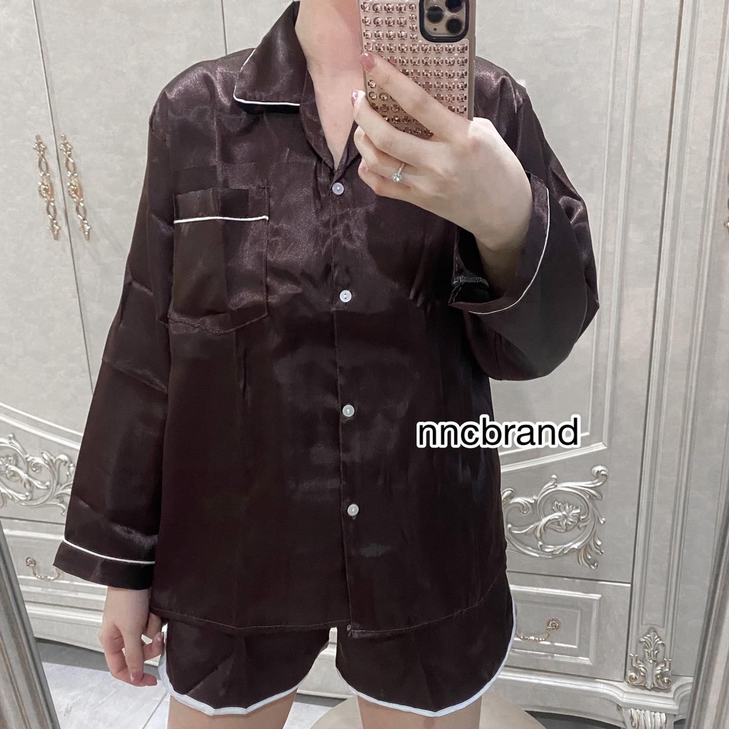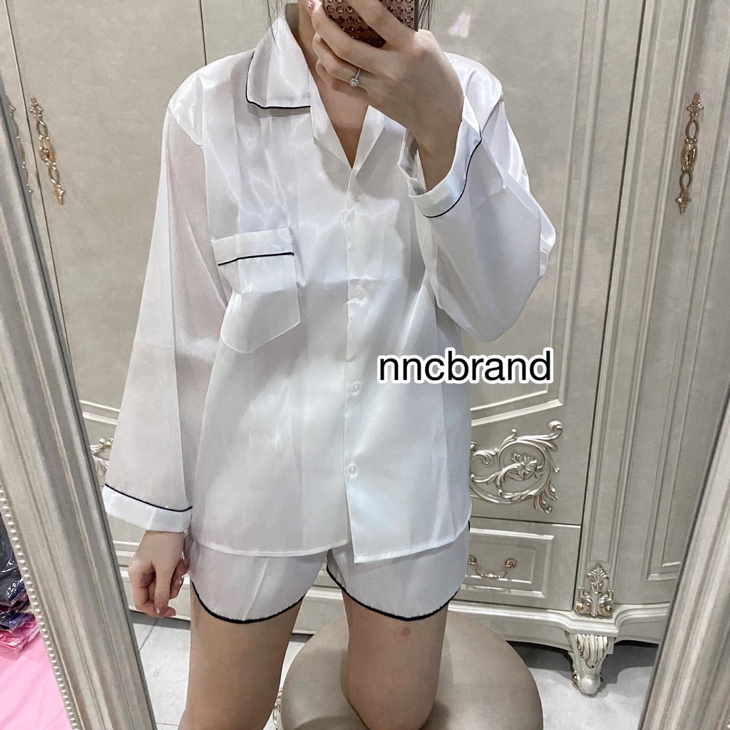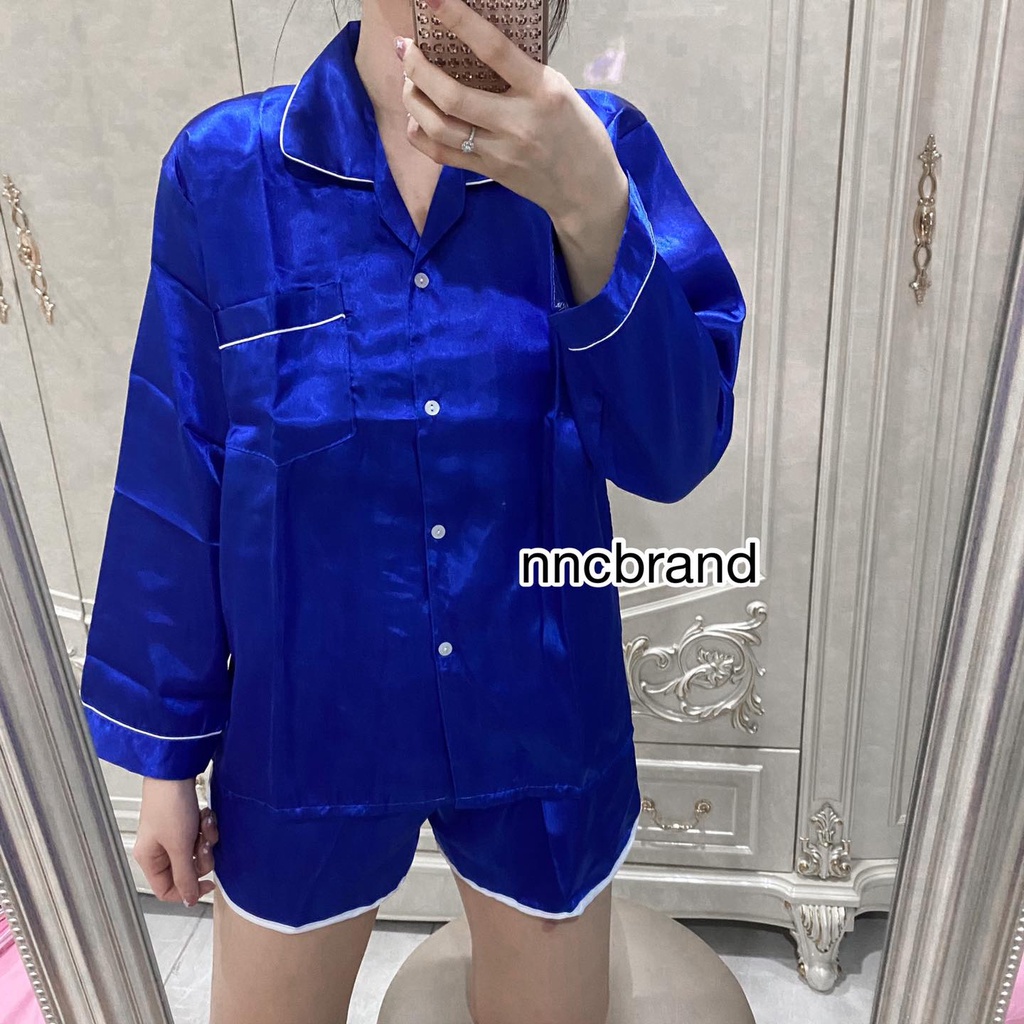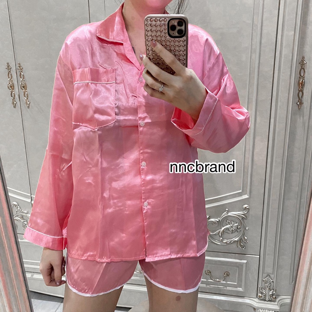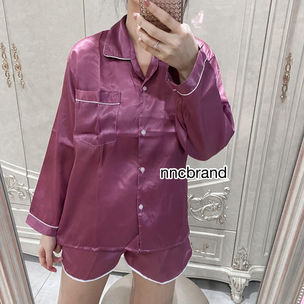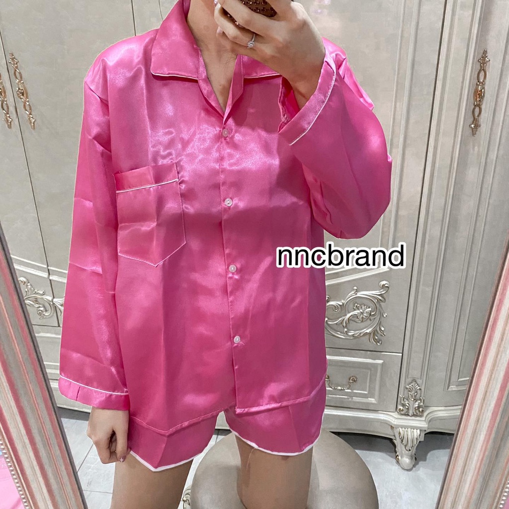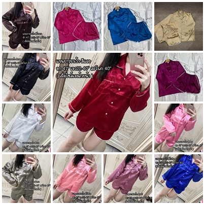 ชุดนอนซาติน แขนยาว ขาเว้า