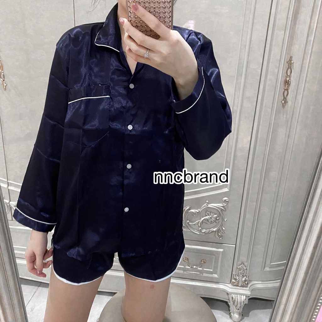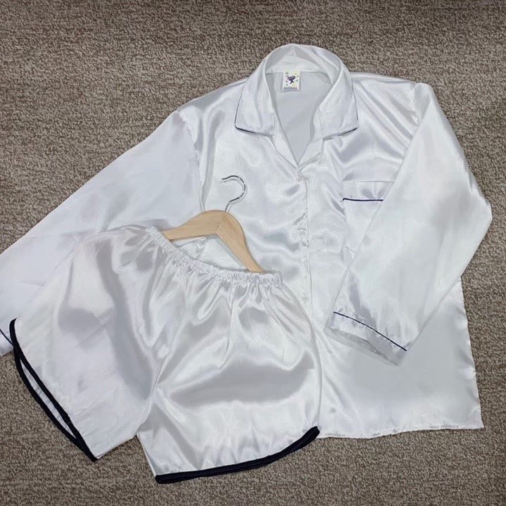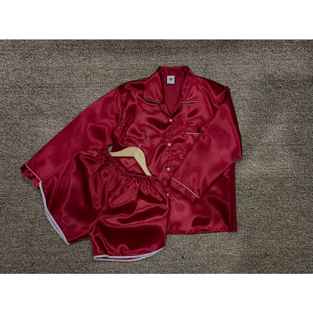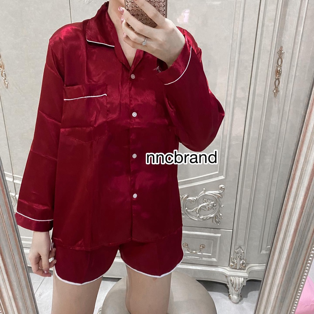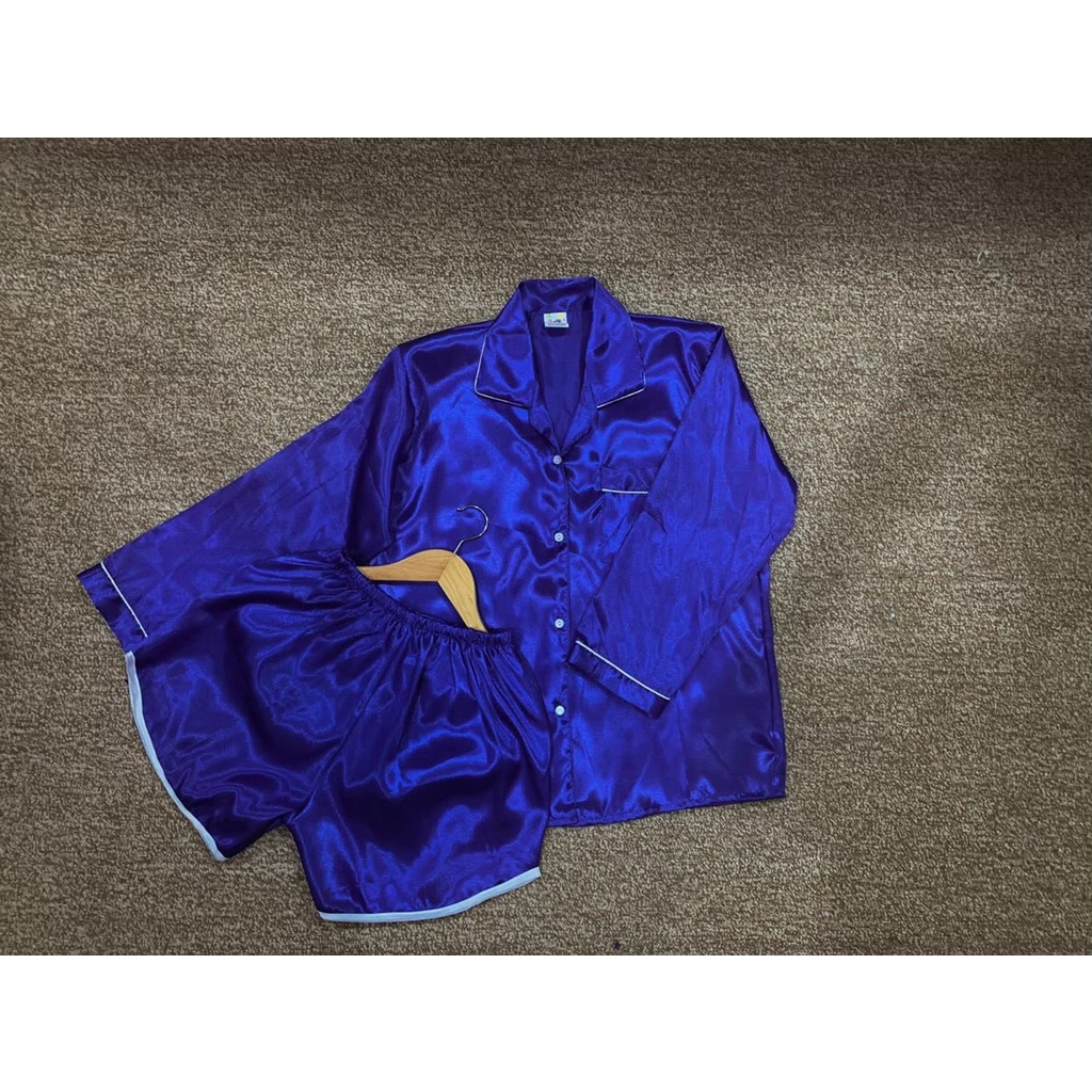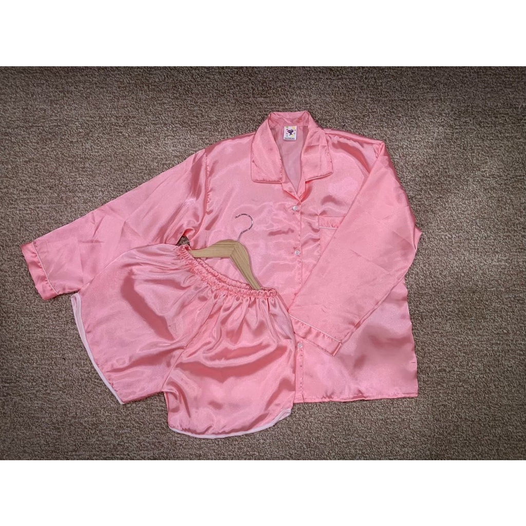 ชุดนอนซาติน แขนยาว ขาเว้า