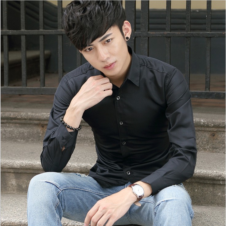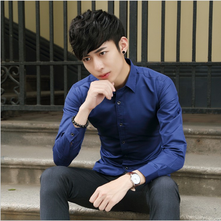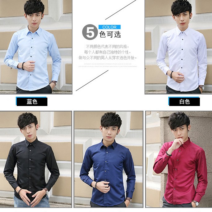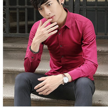 MR-DEER เสื้อเชิ๊ต แขนยาว ผู้ชาย แต่งกระดุมหน้า สีพื้น รุ่น 021