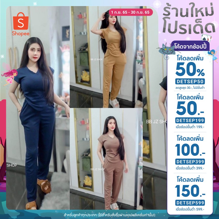 🎀เก็บโค้ดหน้าร้าน + ใช้โค้ด INCT99K เหลือ 72.- 🎀 ชุดเซ็ท ผ้าร่องคอวี (เสื้อ+กางเกง)