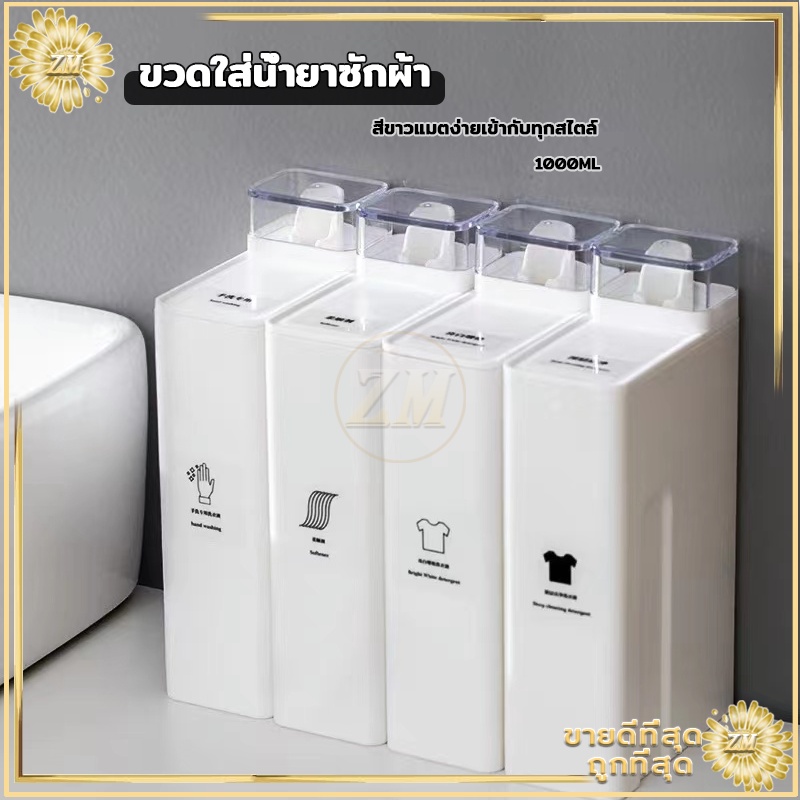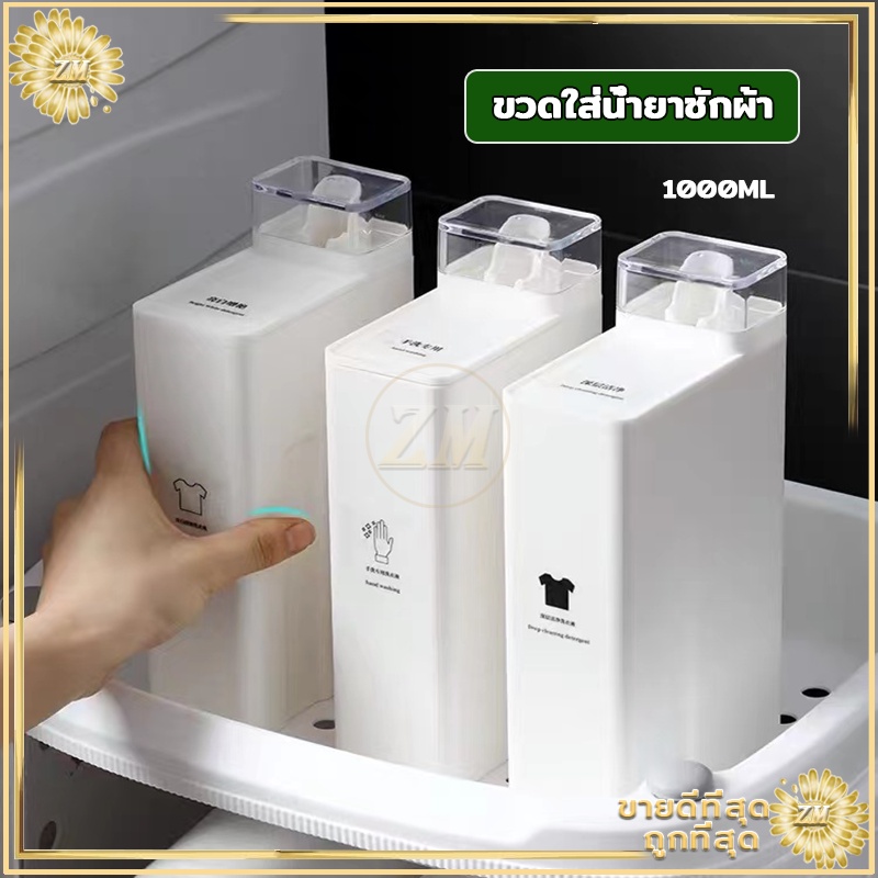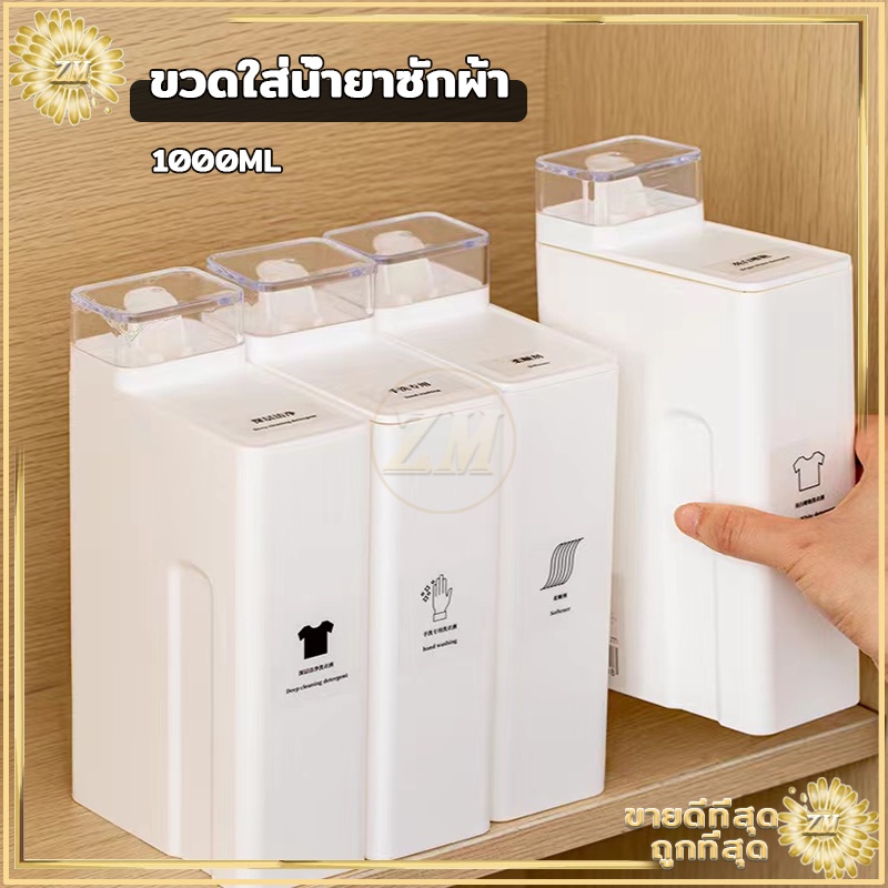 ขวดใส่น้ำยาซักผ้า รีฟิล มินิมอล1000MLแถมฟรี สติ๊กเกอร์แยกประเภท ฝาใช้เป็นถ้วยตวงปริมาณต่อการใช้งาน 1 ครั้งได้