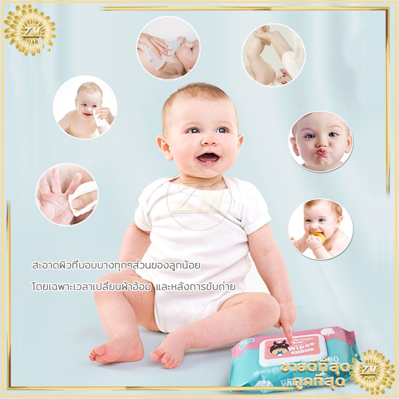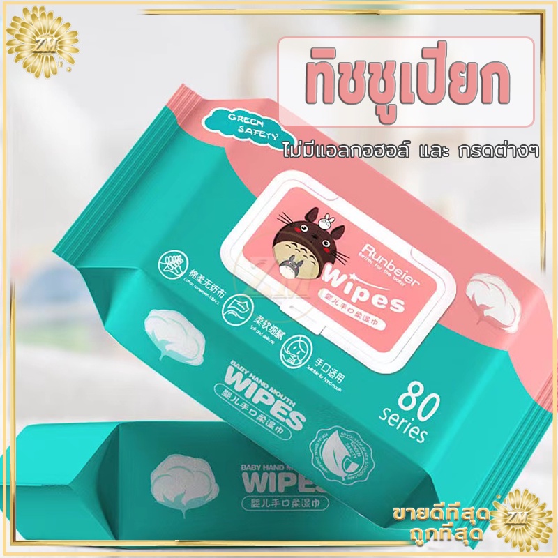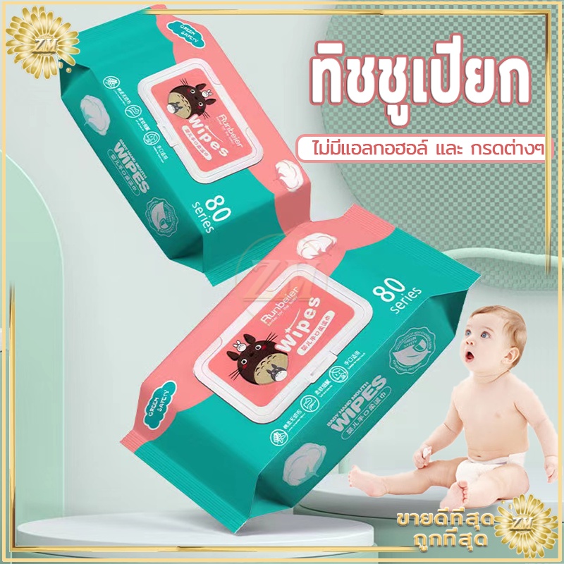 ทิชชูเปียก กระดาษเปียก ทิชชู่เปียกเด็ก ทิชชู่เปียกทำความสะอาด 80แผ่น สูตรน้ำบริสุทธิ์ น้ำเต็มๆแผ่น ผ้านุ่มชุ่มชื