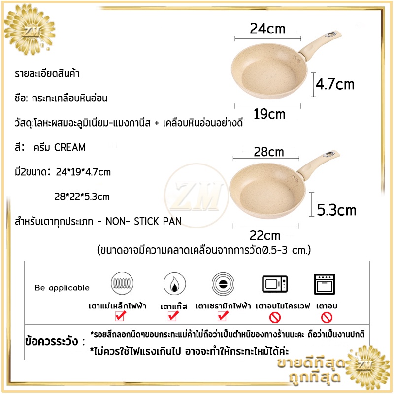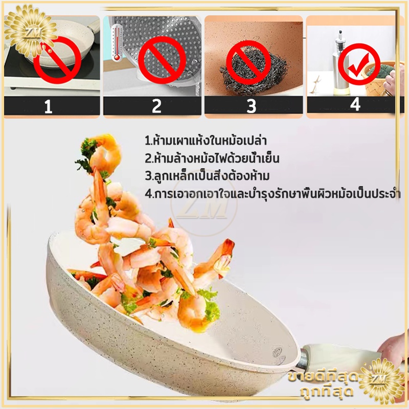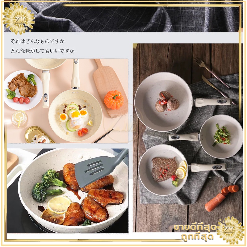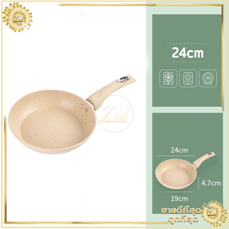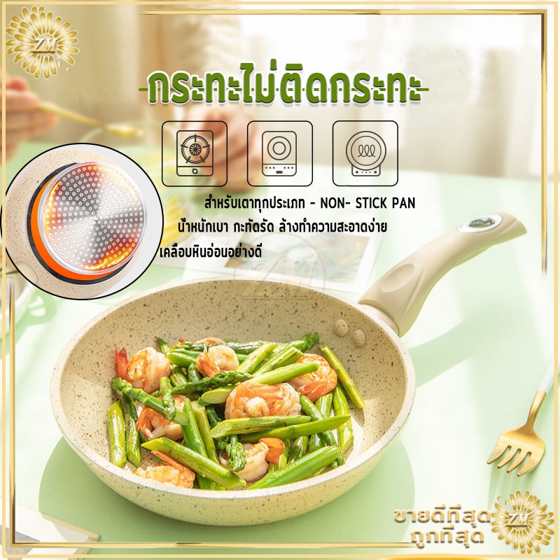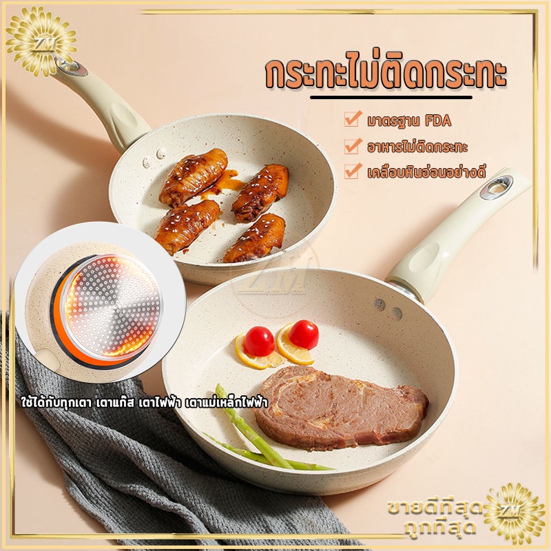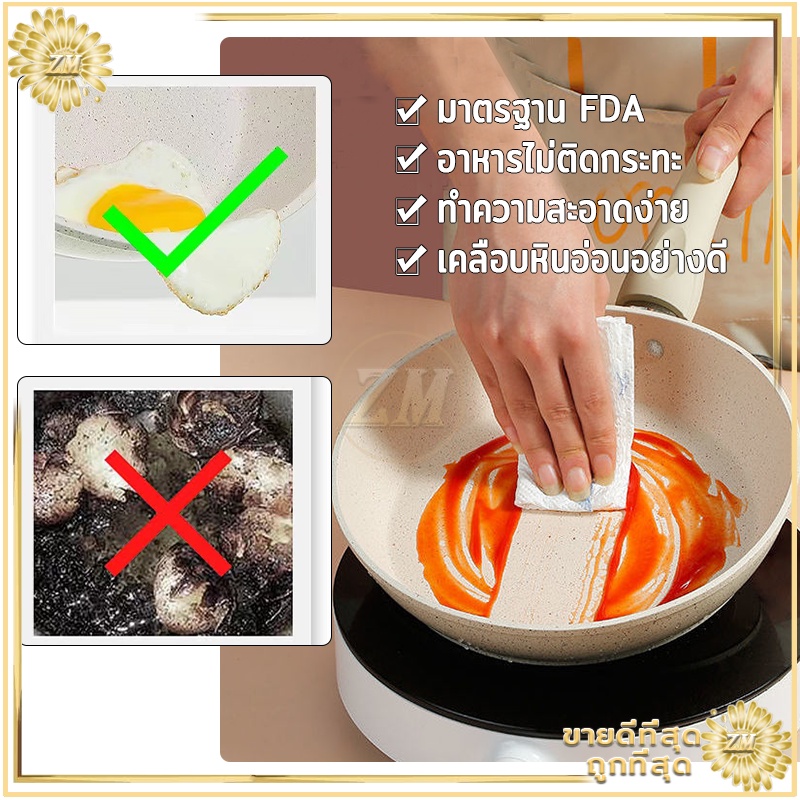 กระทะไม่ติดกระทะเคลือบหินอ่อน แบน ร้อนเร็ว ใช้น้ำมันน้อยได้ควันน้อย สำหรับเตาทุกประเภท