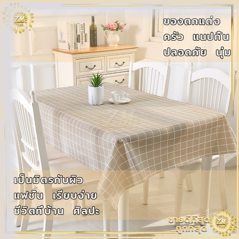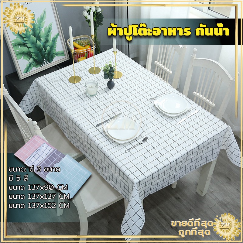 ผ้าปูโต๊ะ สี่เหลี่ยมผืนผ้า ลายตาราง กันน้ำ มี 3 ขนาด กันน้ำและกันเปื้อน ทำความสะอาดง่าย