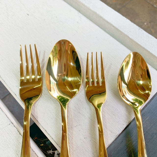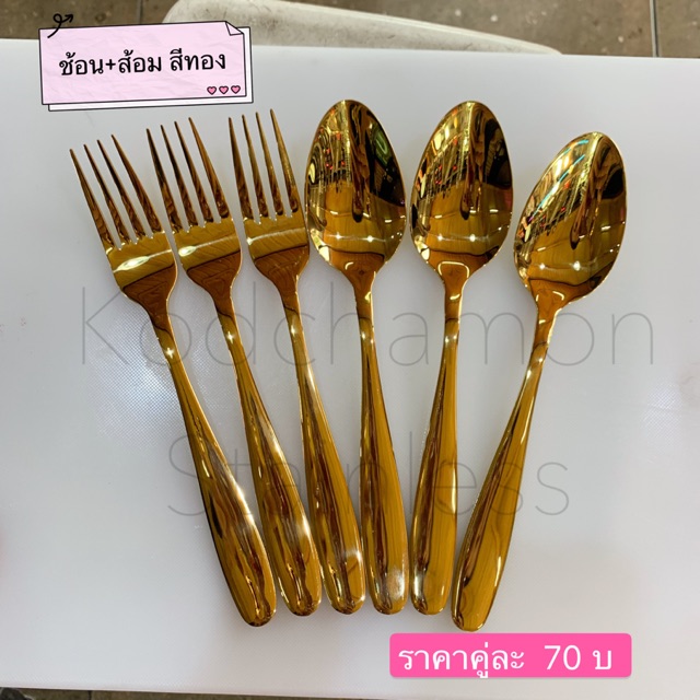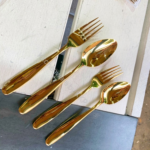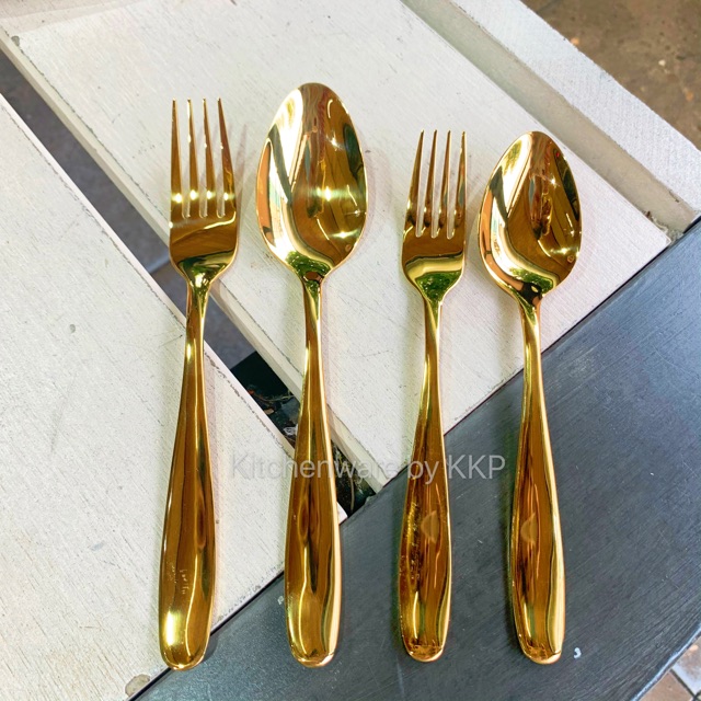 ช้อนส้อมสแตนเลส สีทอง (ทรงปากไข่ No.2 )