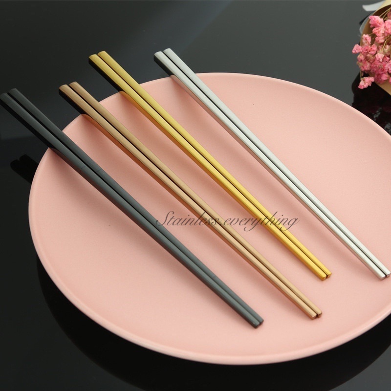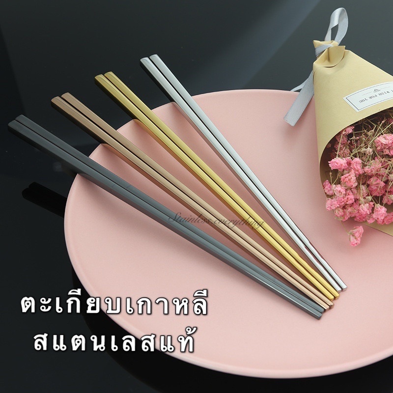 ตะเกียบเกาหลีสแตนเลส สีเงิน สีทอง สีพริ้งโกลด์ (พร้อมส่ง)