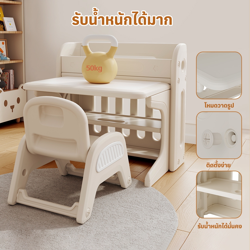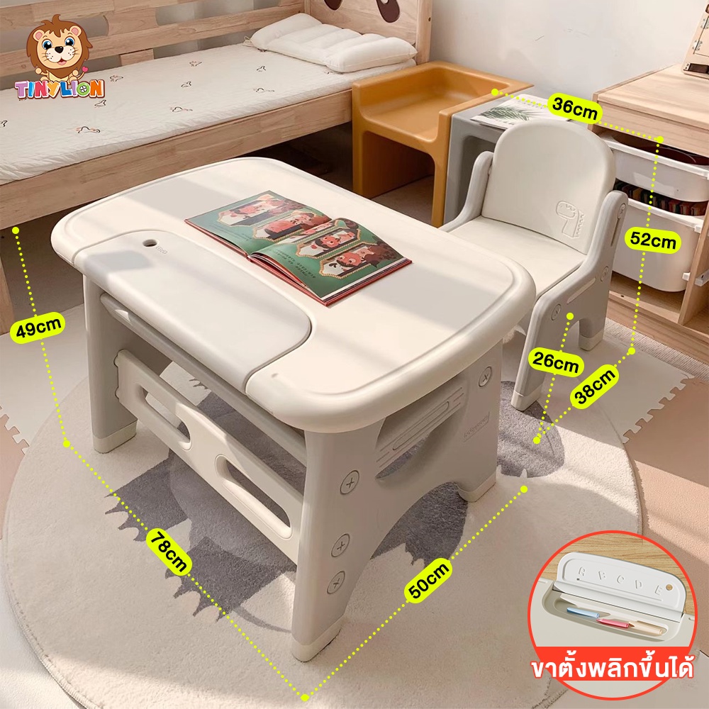 🔥ขายดี🔥TinyLion โต๊ะเด็ก โต๊ะเขียนหนังสือเด็ก พร้อมเก้าอี้ วาดภาพ/ปรับความสูง/วางของได้