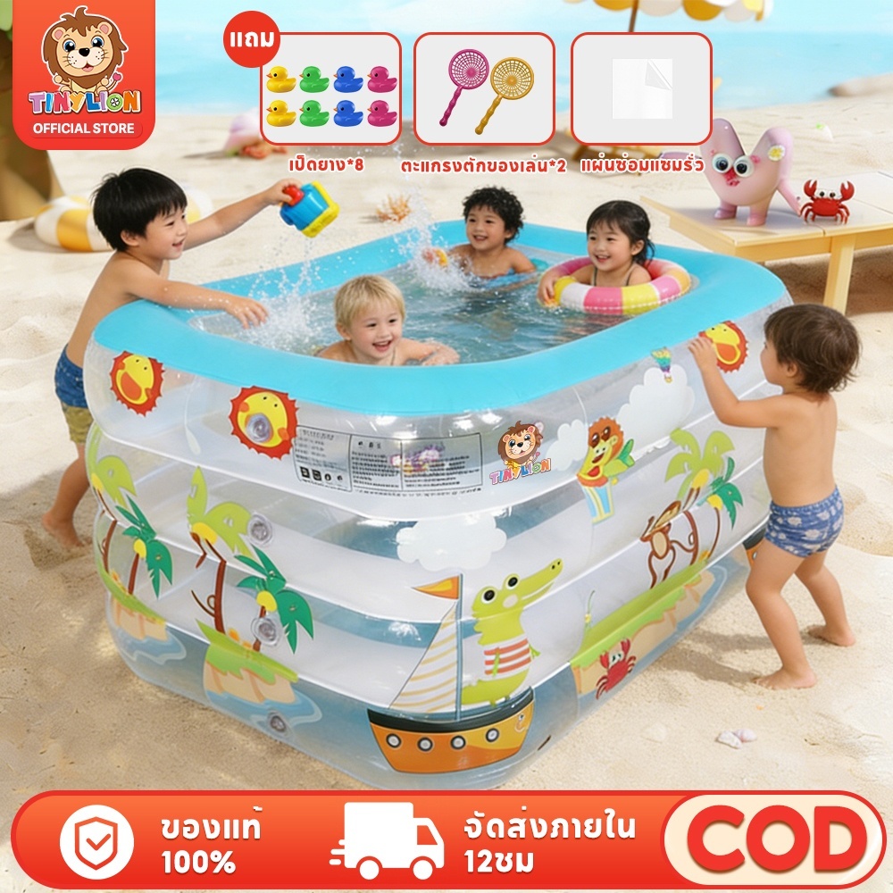 🔥TinyLion🔥สระน้ำเป่าลม สระน้ำ สระน้ำเด็ก 3 ชั้น พื้นเป่าลมกันกระแทก ขนาด เล่นได้ทั้งครอบครัว