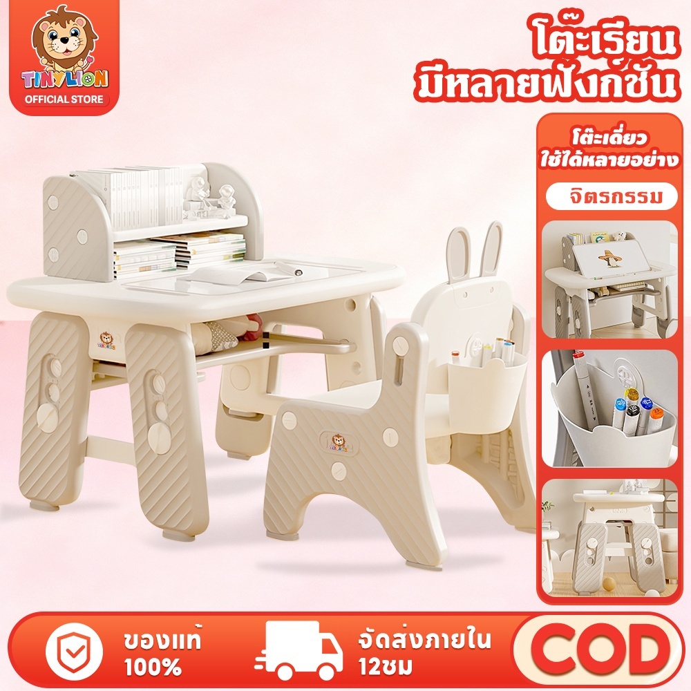 TinyLion โต๊ะเด็ก โต๊ะเขียนหนังสือเด็ก พร้อมเก้าอี้ เหมาะสำหรับเด็ก 1-8 ขวบ