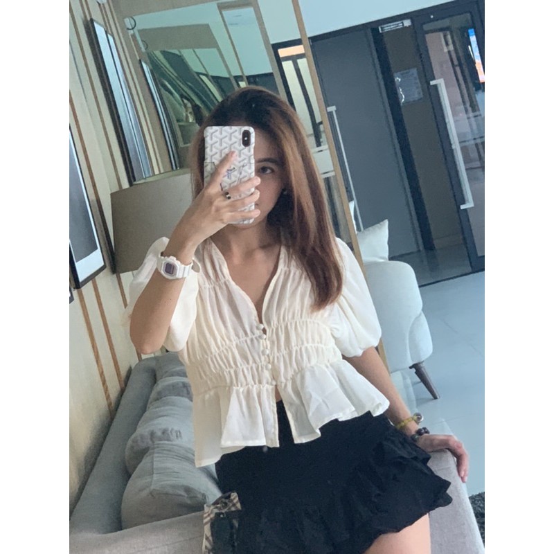 lady plsss2 เสื้อน่ารักเนื้อชีฟองจับพลีสเกรดอย่างดี กระดุมแมทกับเสื้อหรูหรามาก ใส่ขาสั้นขายาวสวยมากค่ะ♡♡♡♡
