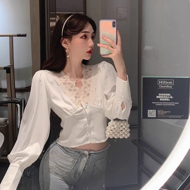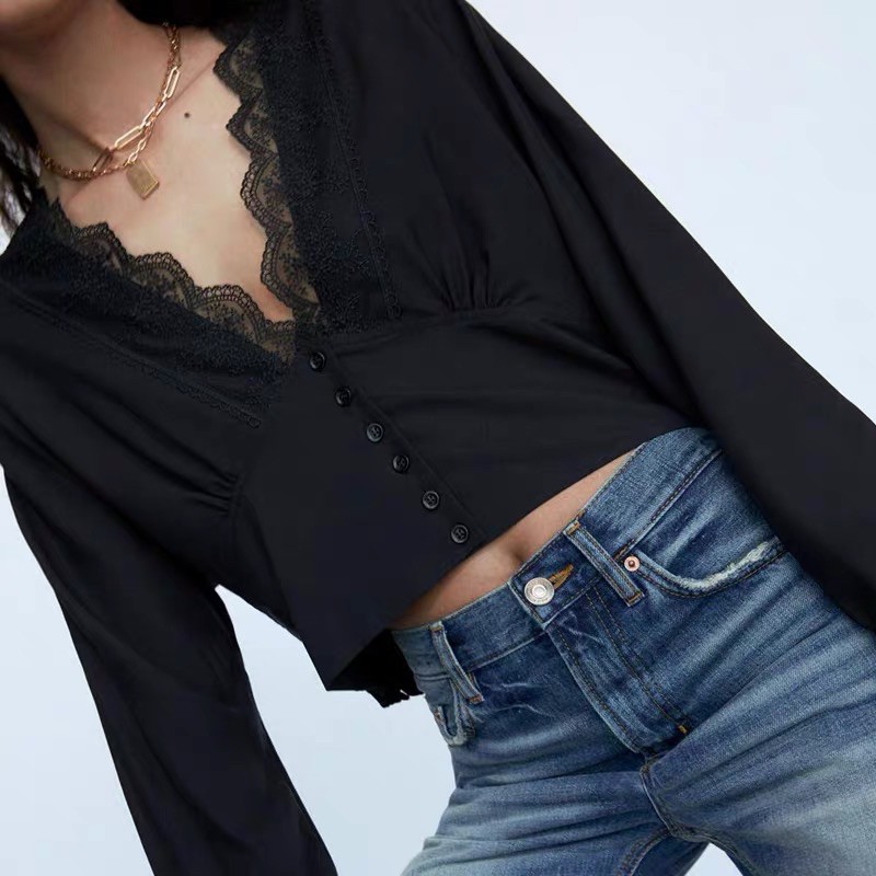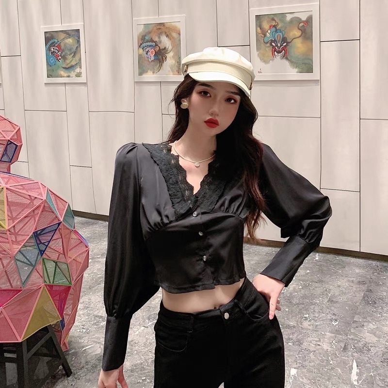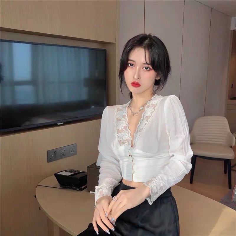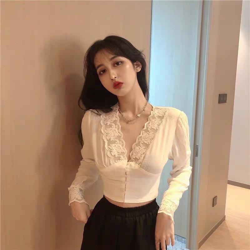 💜💜kiss me top 💜💜เสื้อแต่งลูกไม้ คอวี สวยหวานเซ็กซี่
