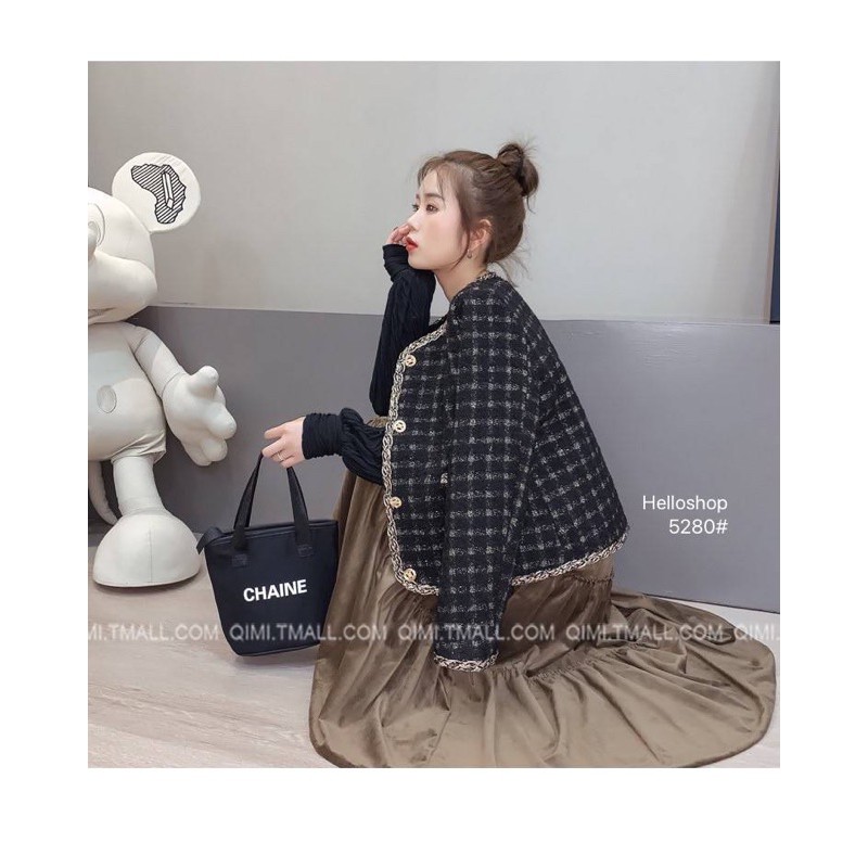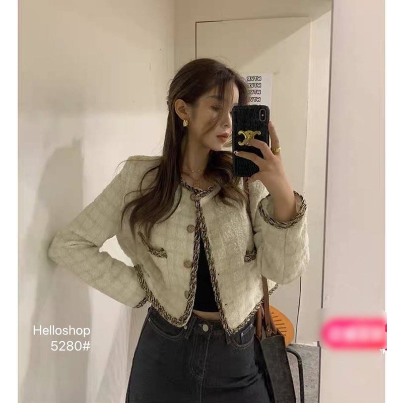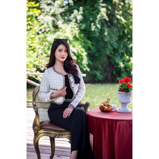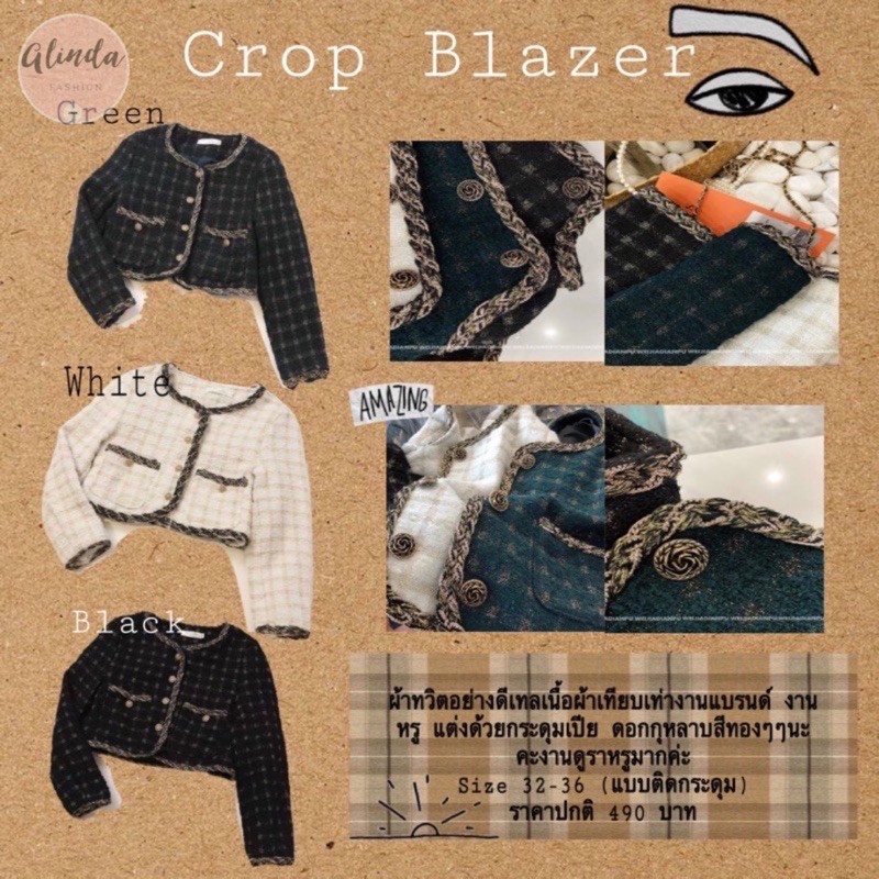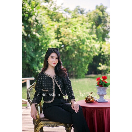 Crop Blazerเสื้อคลุมเสื้อสูทผ้าทวิต งานแบรนด์ ดีเทลหรู แต่งด้วยกระดุมกุหลาบเปียทองไขว้ งานสุภาพดูดีค่ะ