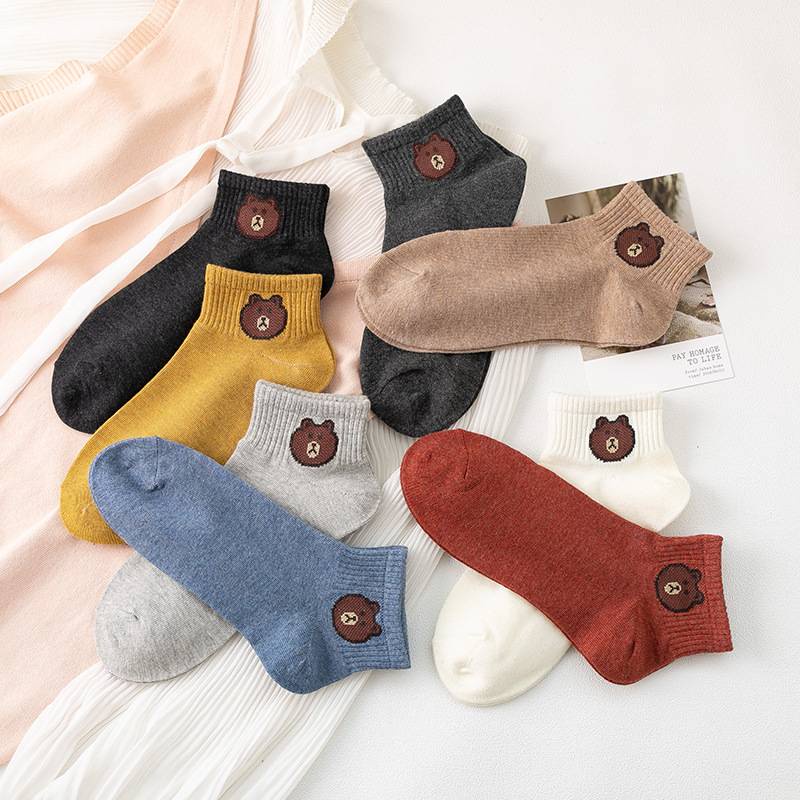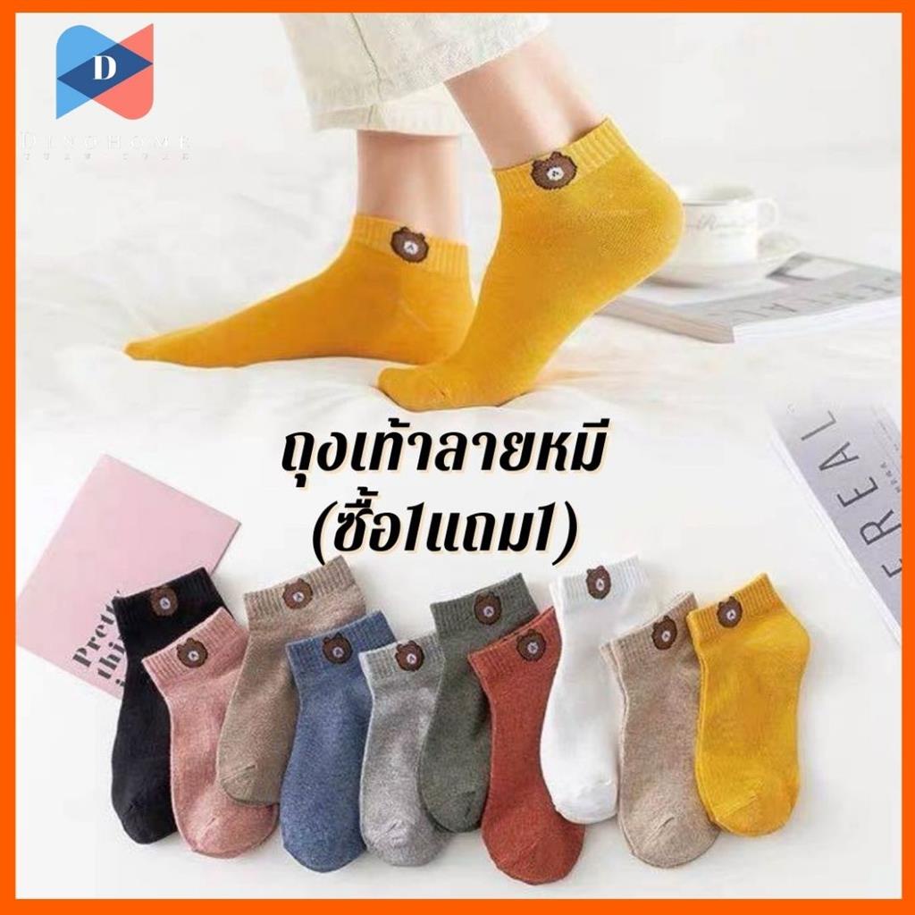 ⭐️ขายปลีก/ส่ง⭐️(ซื้อ1แถม1) เลือกสีได้ ถุงเท้าลายหมี มี10 สีให้เลือก ถุงเท้าข้อสั้น น่ารักๆ #TT002