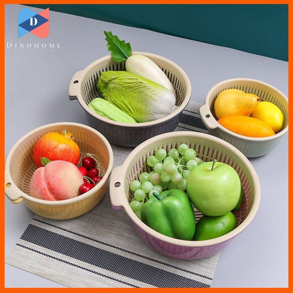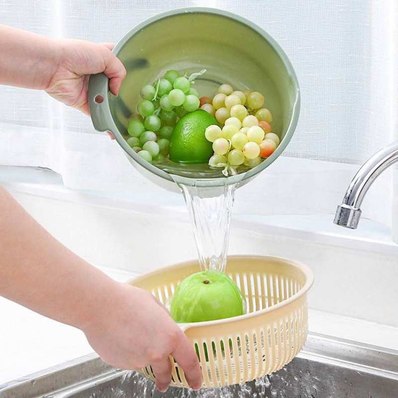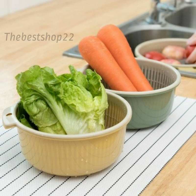 ⭐ขายปลีก/ส่ง⭐ตะกร้าล้างผัก ตะกร้าล้างผลไม้ ตะกร้าสองชั้น มีรูระบายน้ำ #G-0008