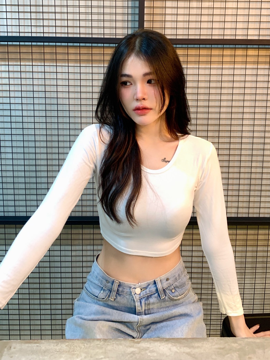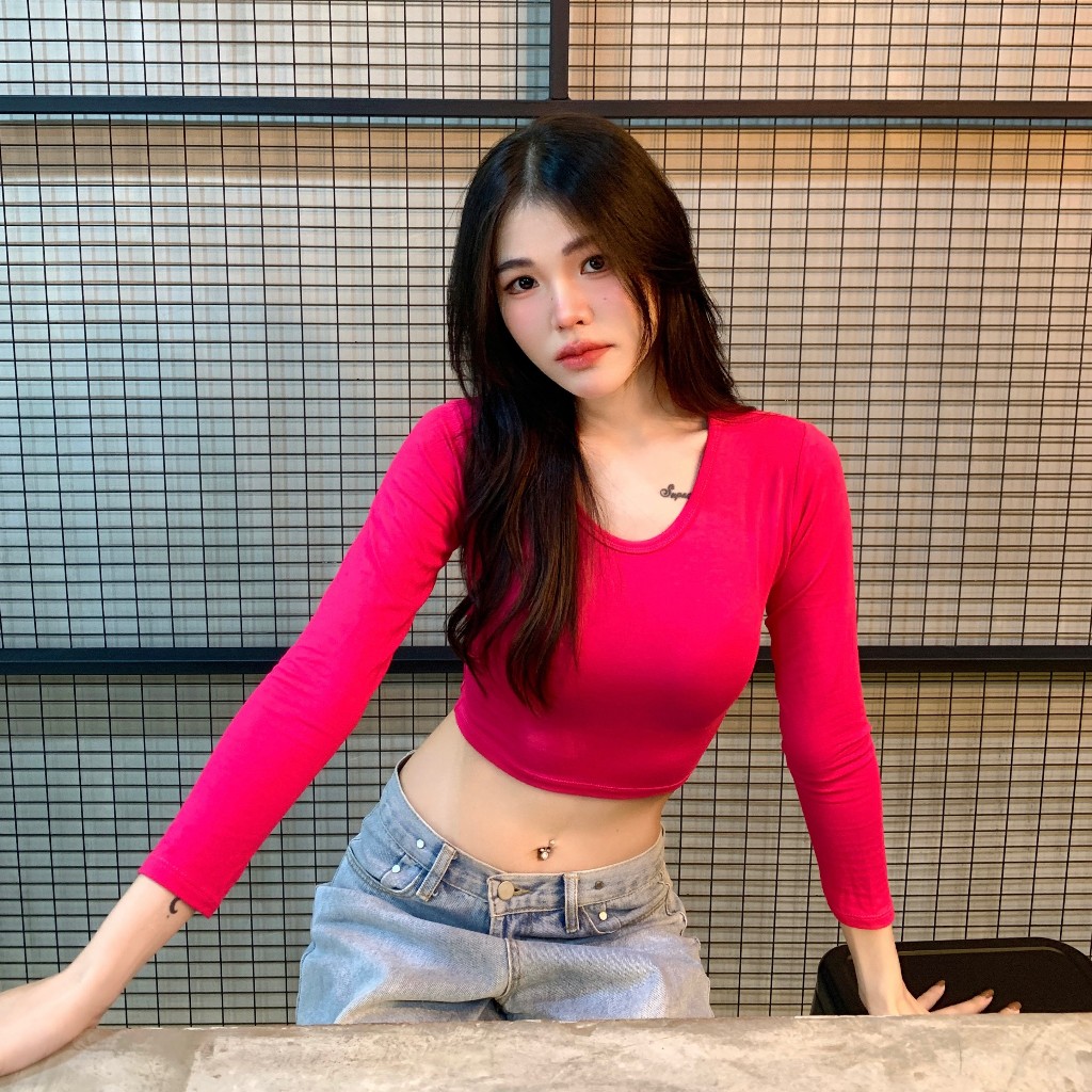 PRP x SPN เสื้อครอปแขนยาว ผ้าเรย ่อน ใส่แล้วพรางหุ่นสุด สไตล์ y2k รุ่น WAN