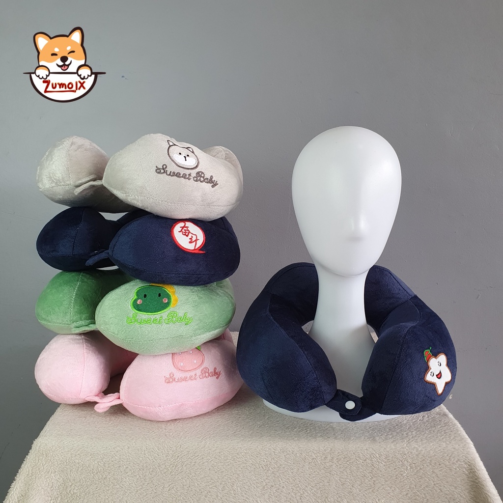 ZumoIX หมอนรองคอ ทรงสูงมีที่รอง รุ่นมีซิป มีกระดุมล็อค ใยสังเคราะห์คุณภาพสูง ผ้ากำมะหยี่ Neck Pillow