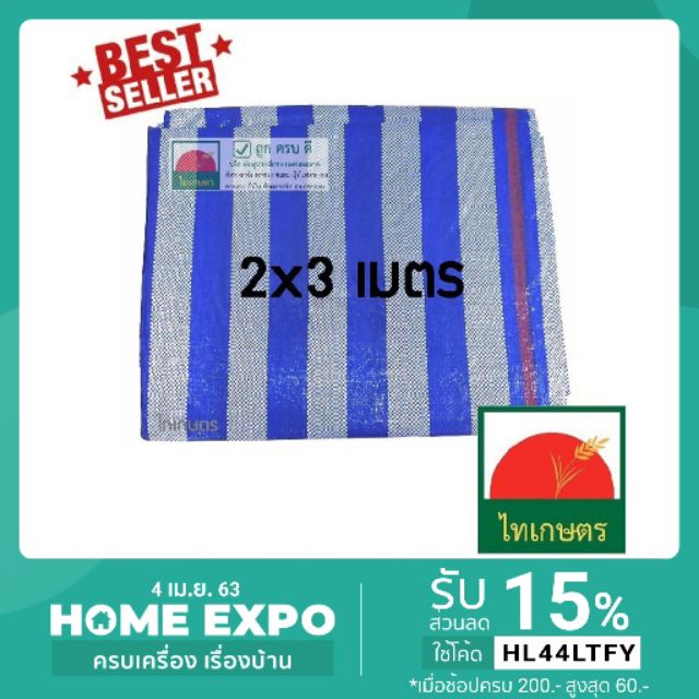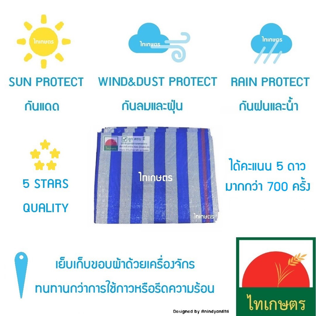 2x3 เมตร ผ้าใบพลาสติกบลูชีท แบบผ้าฟางริ้ว ใช้กันแดด คลุมรถ กันฝน