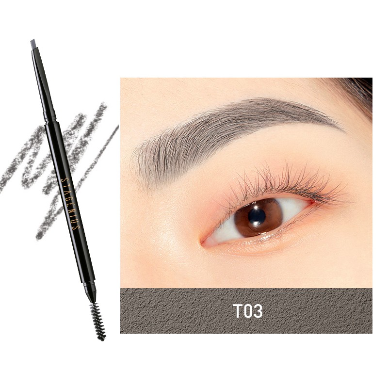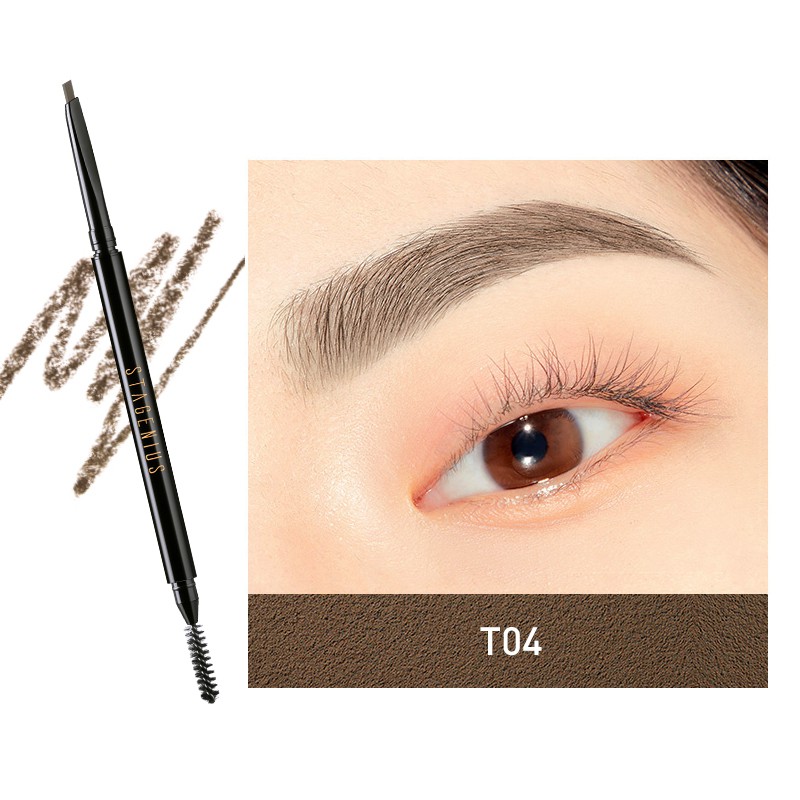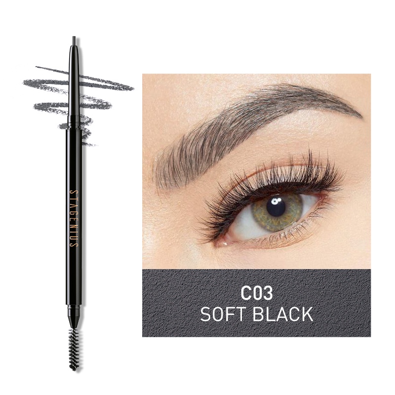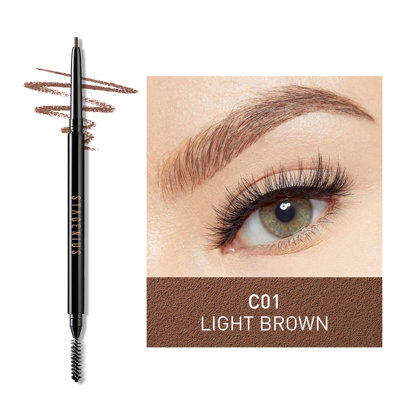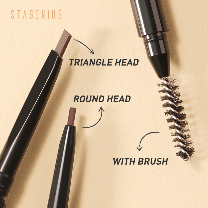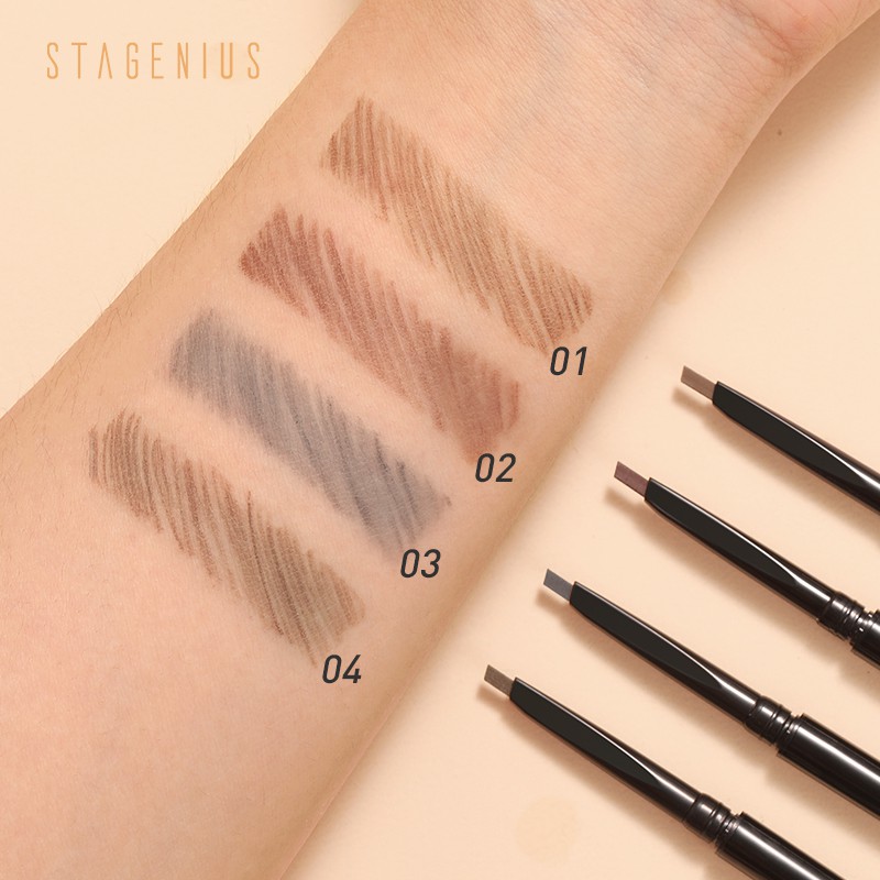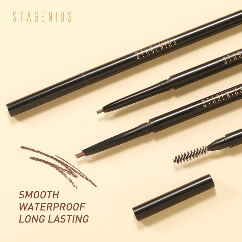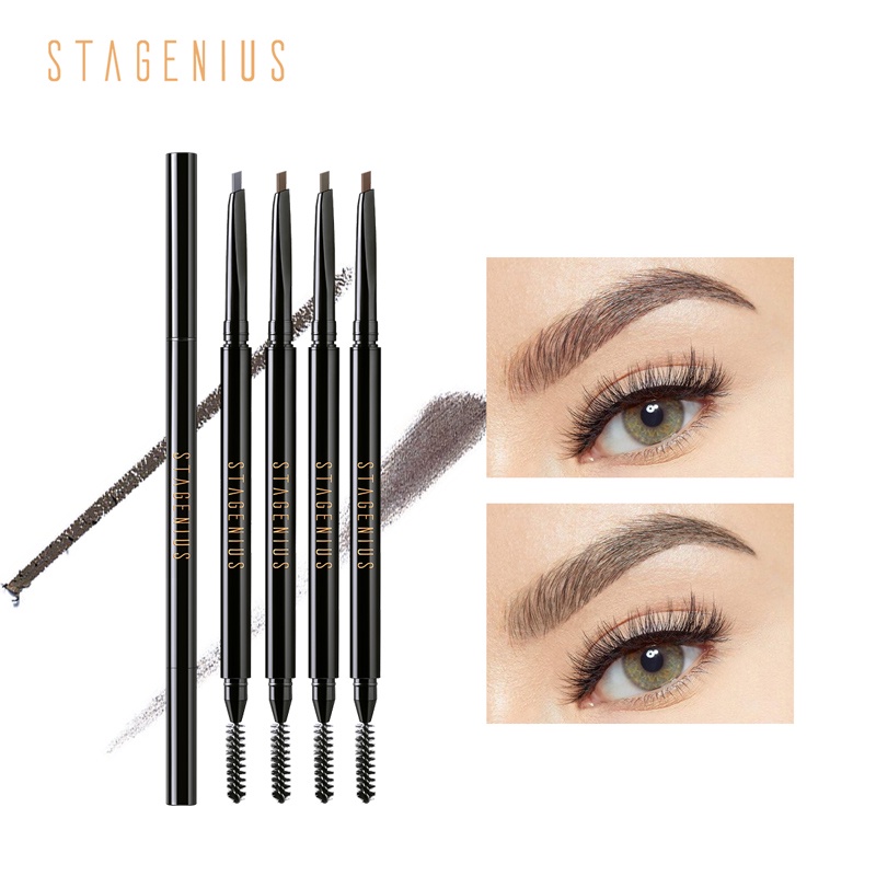 STAGENIUS 2 in 1 ดินสอเขียนคิ้ว ดินสอไอไลน์เนอร์ แบบหมุน กันน้ำ มีแปรงปัดคิ้วในตัว มี 4 สีให้เลือก ดินสิเขียนคิ้ว