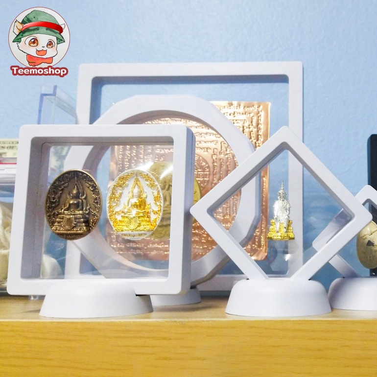 กรอบใส่ พระ กล่องเก็บเครื่องประดับ กล่องเก็บสร้อยคอ กรอบใส่เหรียญ กรอบใส่โชว์ มีขาตั้ง ป้องกันฝุ่น สีโปร่งใส หลายขนาด