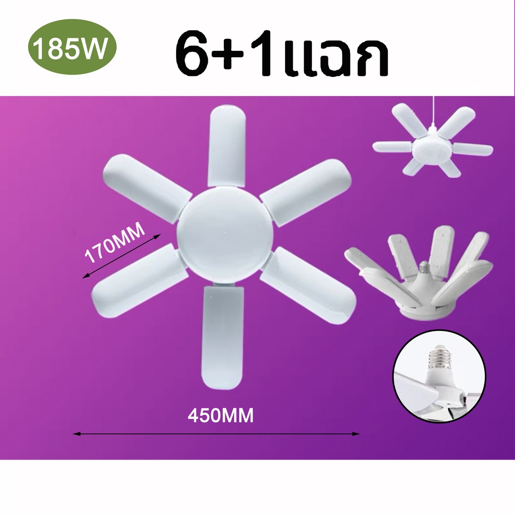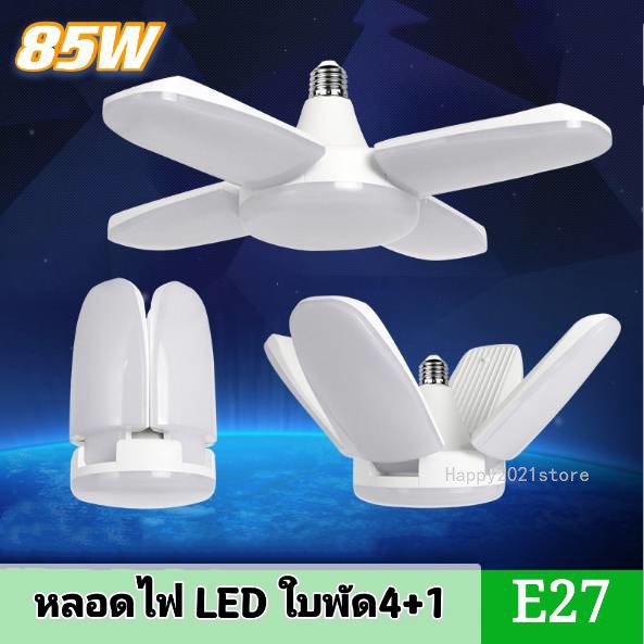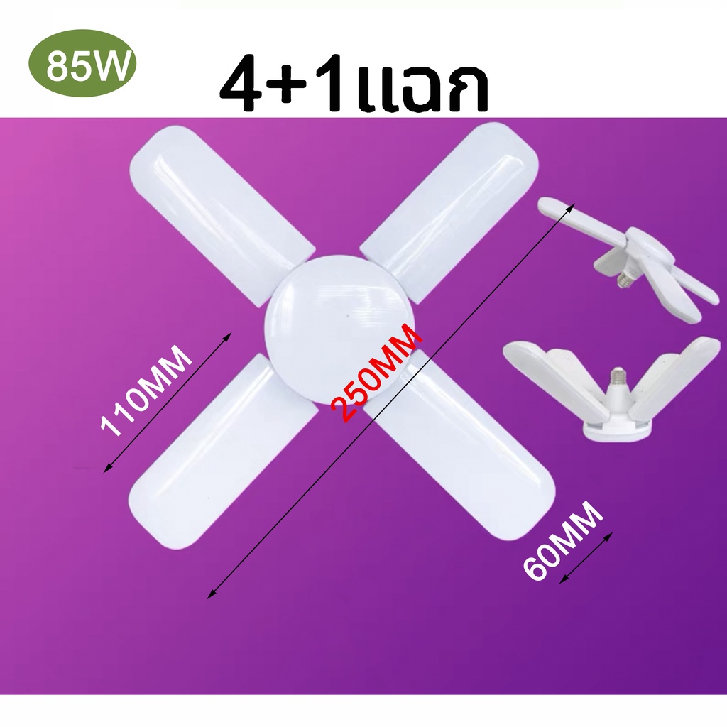 หลอดไฟ LED หลอดไฟทรงใบพัด 4+1 ใบ LED Bulb 85W (ไฟสีขาว) พับเก็บได้ ประหยัดพลังงานไฟ หลอดไฟทรงใบพัด