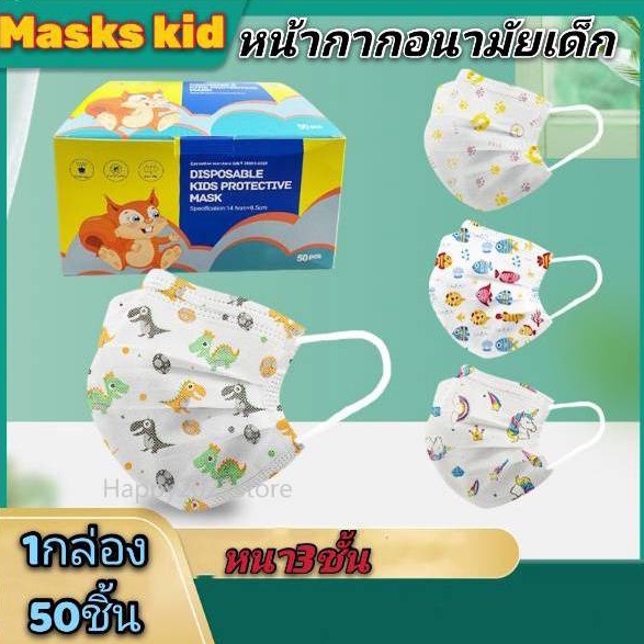 แมสเด็ก หน้ากากเด็ก แมสเด็กลายการ์ตูน หน้ากากอนามัยเด็ก ลายการ์ตูน Face Mask กันฝุ่น 3 ชั้น 1กล่อง 50ชิ้น (คละลาย)