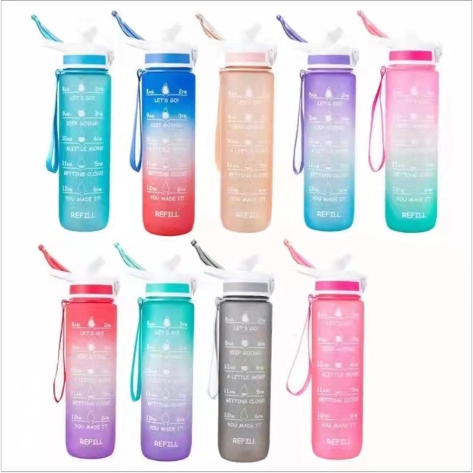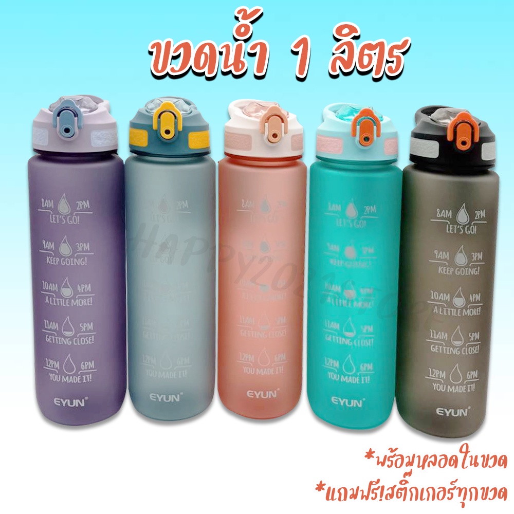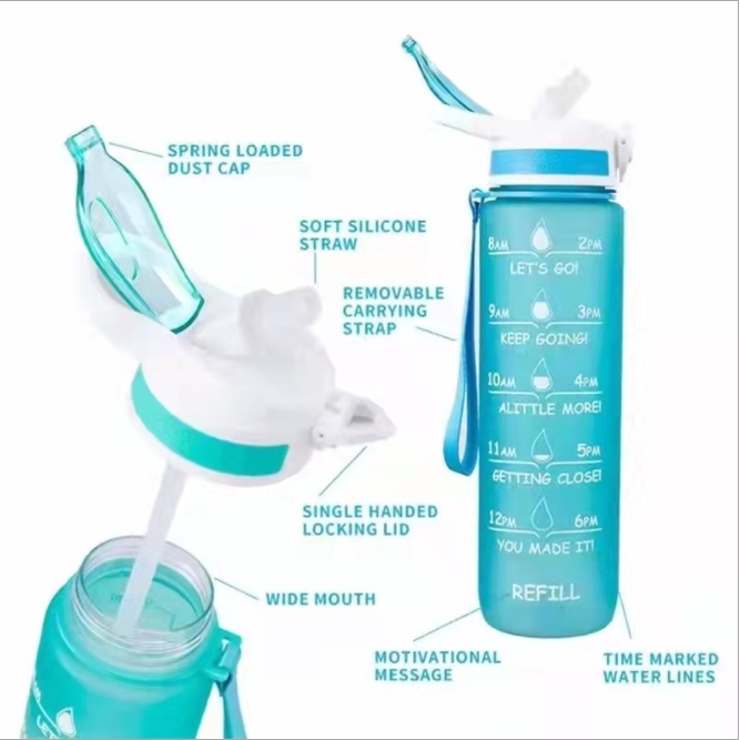 ขวดน้ำ1ลิตร ขวดน้ำพกพา พร้อมหลอด กระบอกน้ำดื่ม แบบพกพา BPA Free กระบอกน้ำ