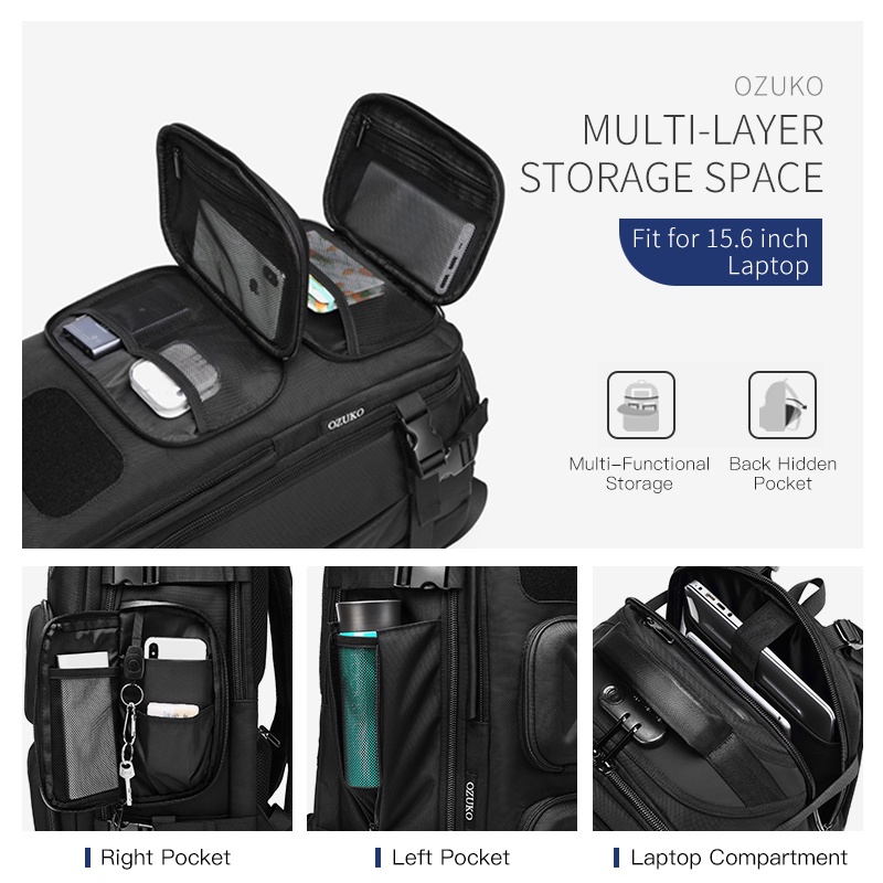 Ozuko กระเป๋าเป้สะพายหลังกันน้ําความจุขนาดใหญ่กันขโมยสําหรับเดินทาง
