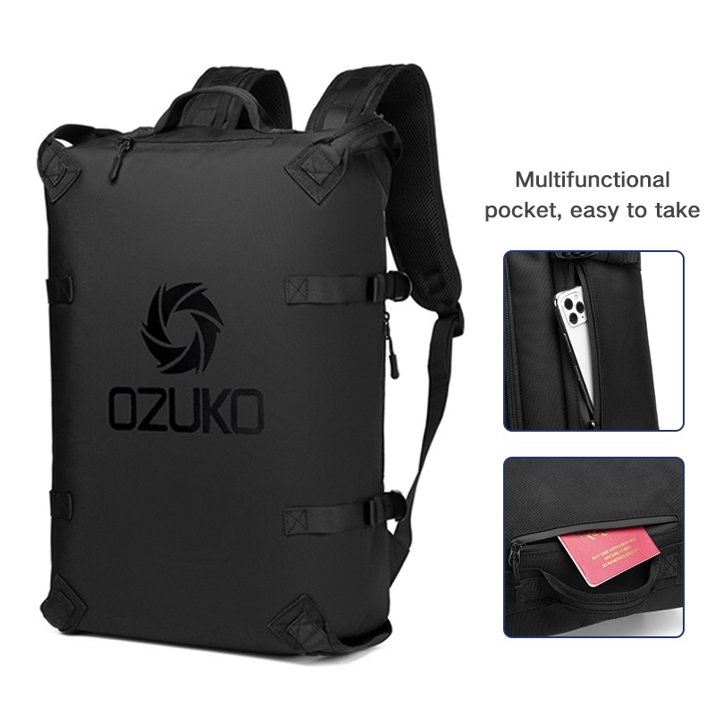Ozuko กระเป๋าเป้สะพายหลังกันน้ําความจุขนาดใหญ่แฟชั่นสําหรับผู้ชาย