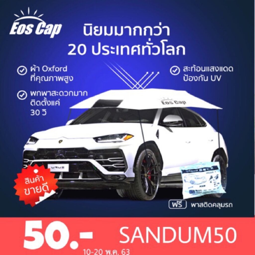 (โคด sandum50) ร่มรถยนต์ EOS Cap ร่มกันแดดรถยนต์ ร่มบังแดดรถยนต์ ขนาด 330x270cm สำหรับรถซีดาน Manual CarSunclose Sedan