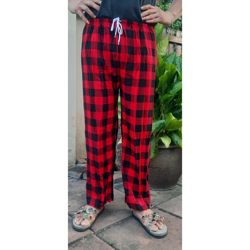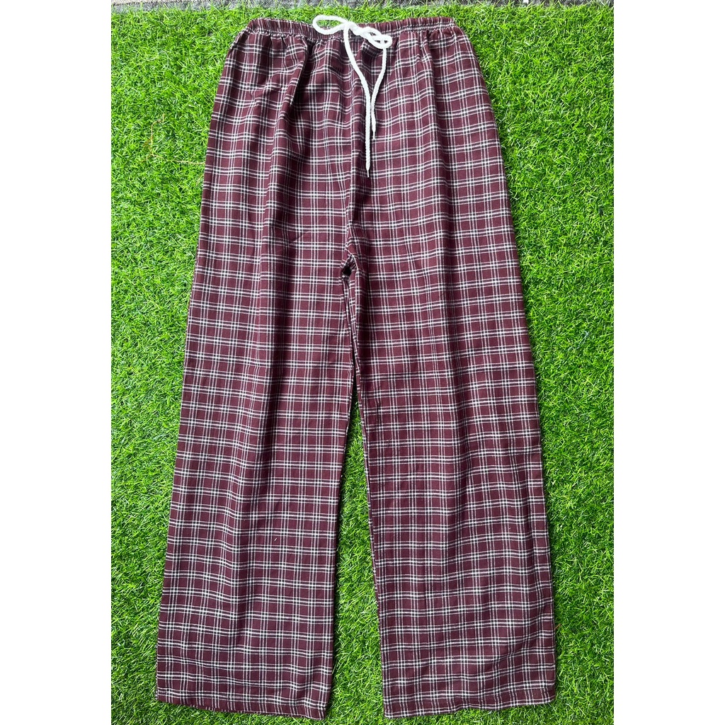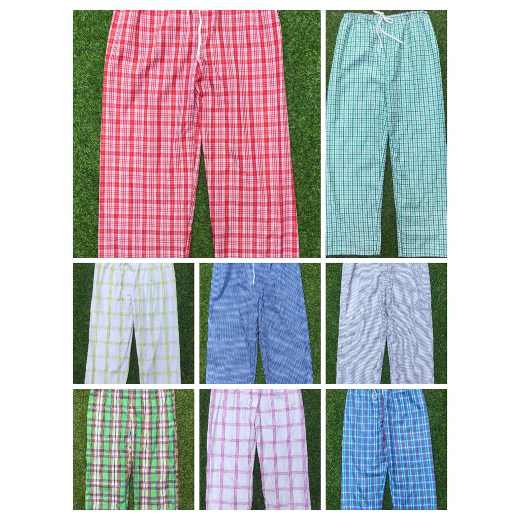 กางเกงขายาว ลายสก๊อต ฟรีไซส์ เอวตั้งแต่ 24 - 34 นิ้ว เอวยางยืดพร้อมเชือกรูดปรับขนาดได้