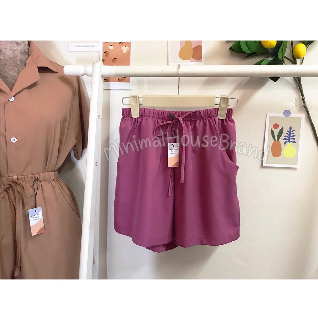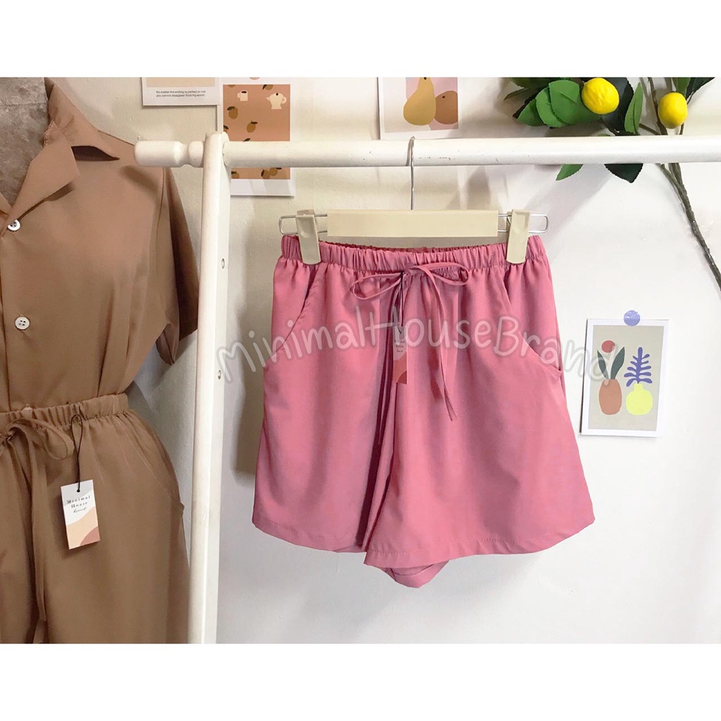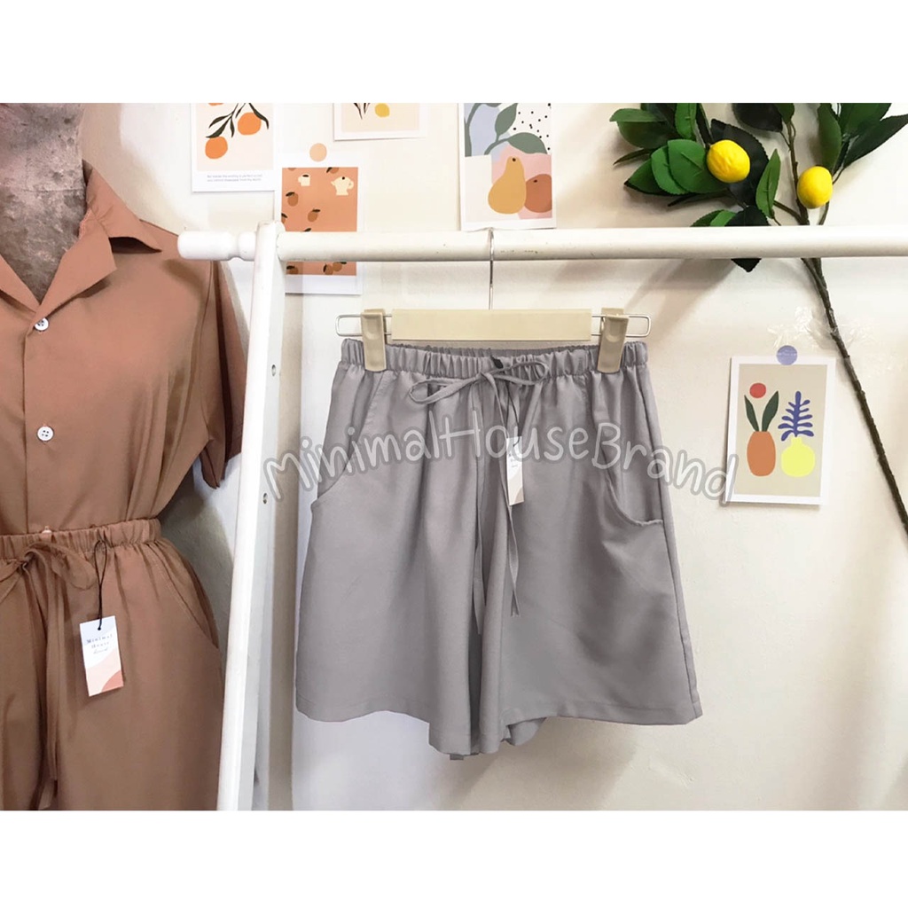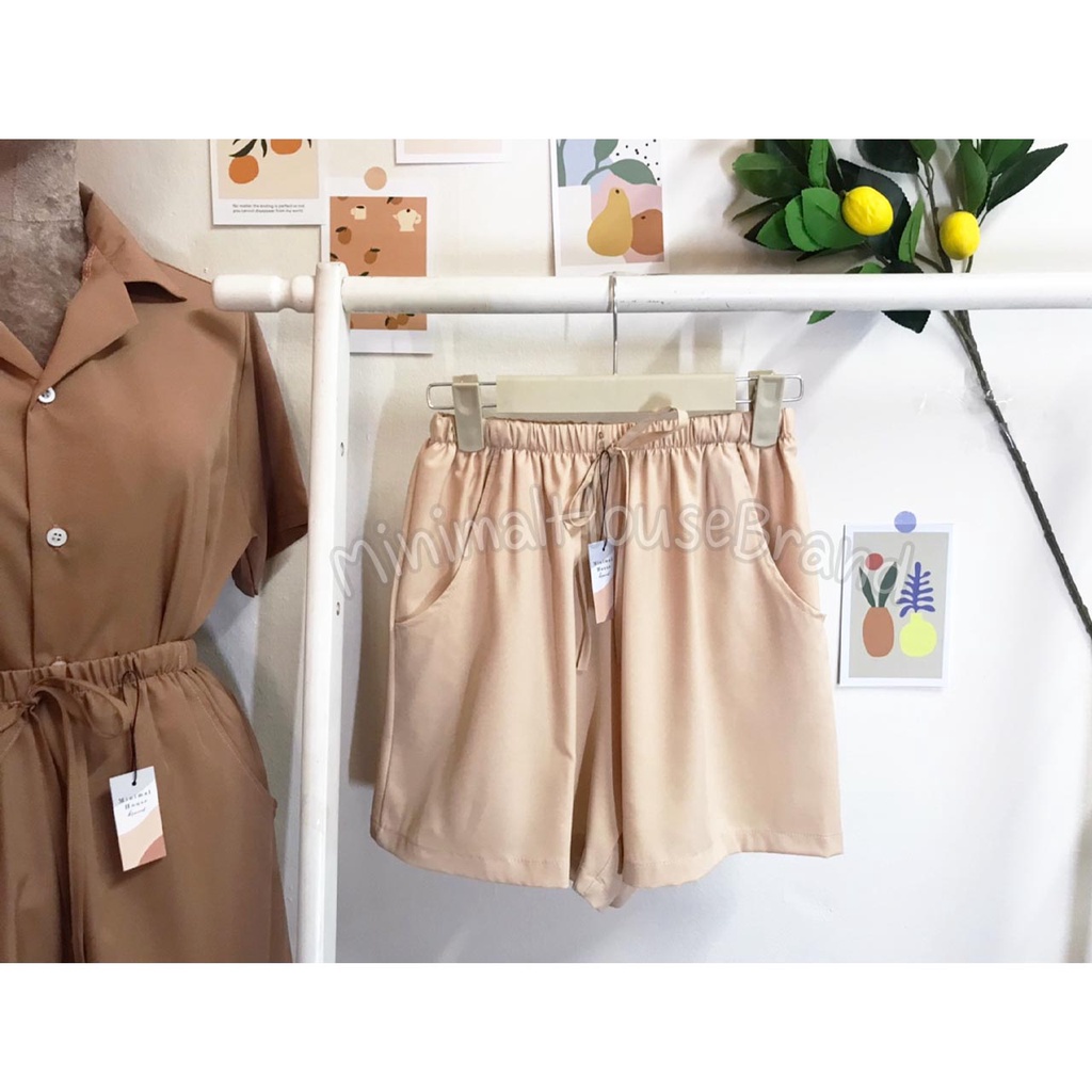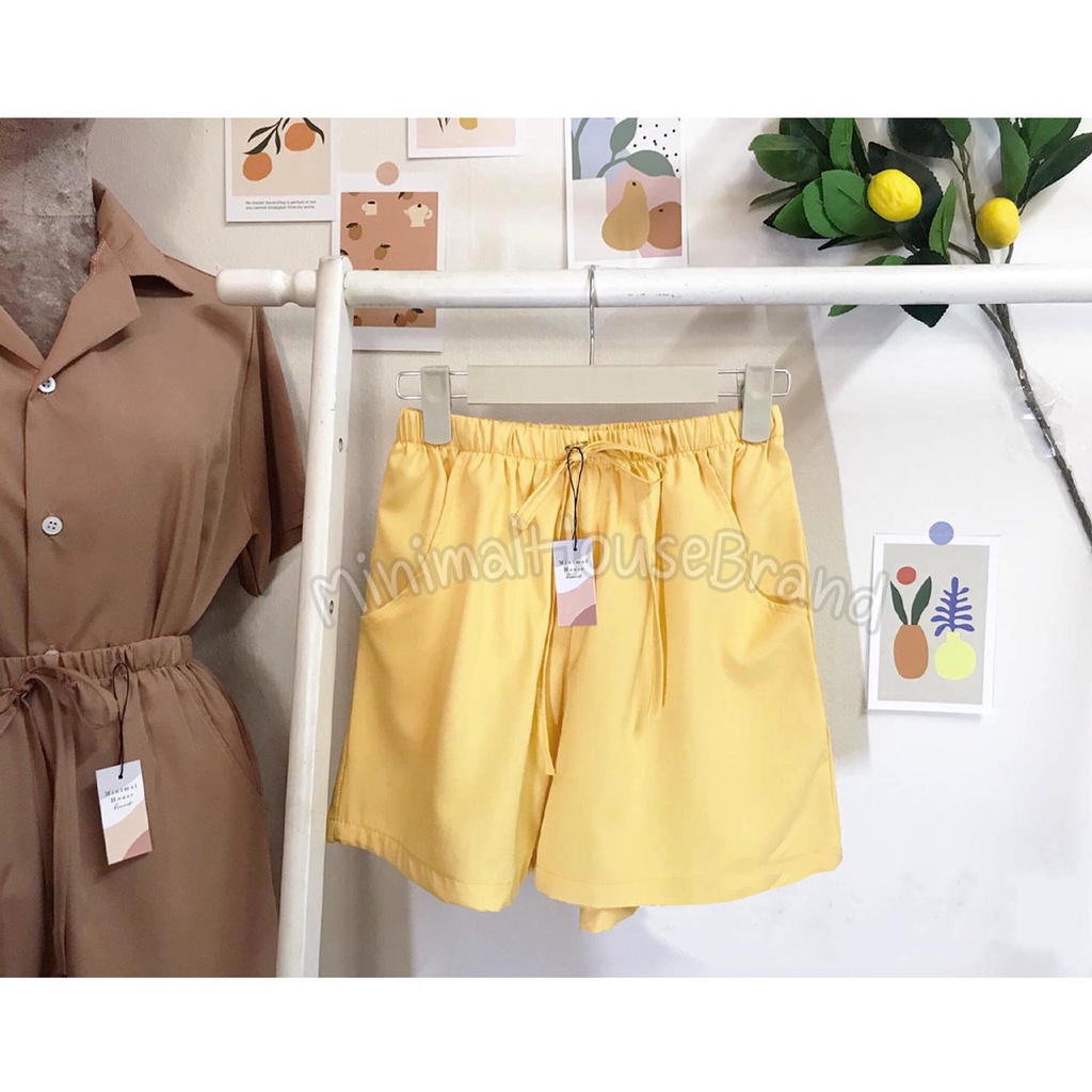 Minimalhousebrand กางเกงขาสั้นเอวสูง เอวยางยืดขนาดฟรีไซส์ ผ้าไหมอิตาลี่สีพื้นสไตล์เกาหลี
