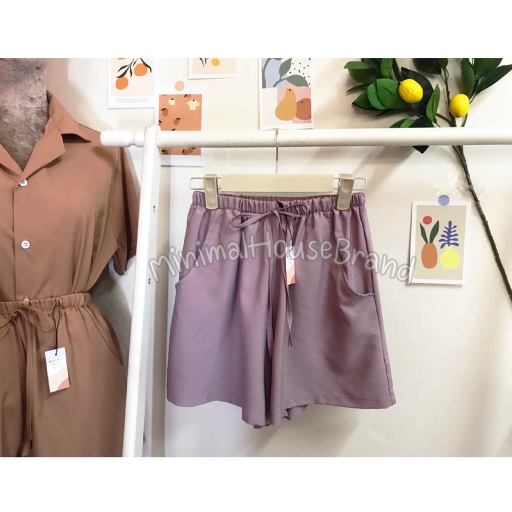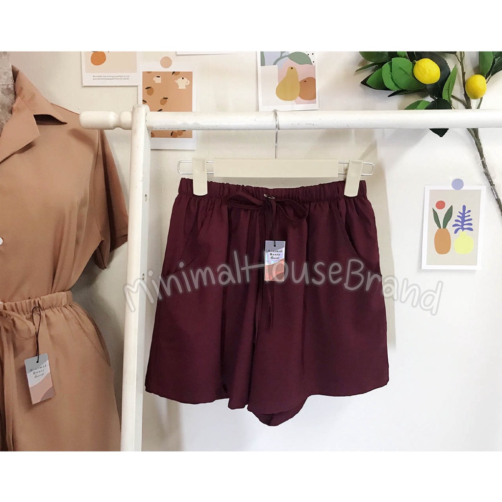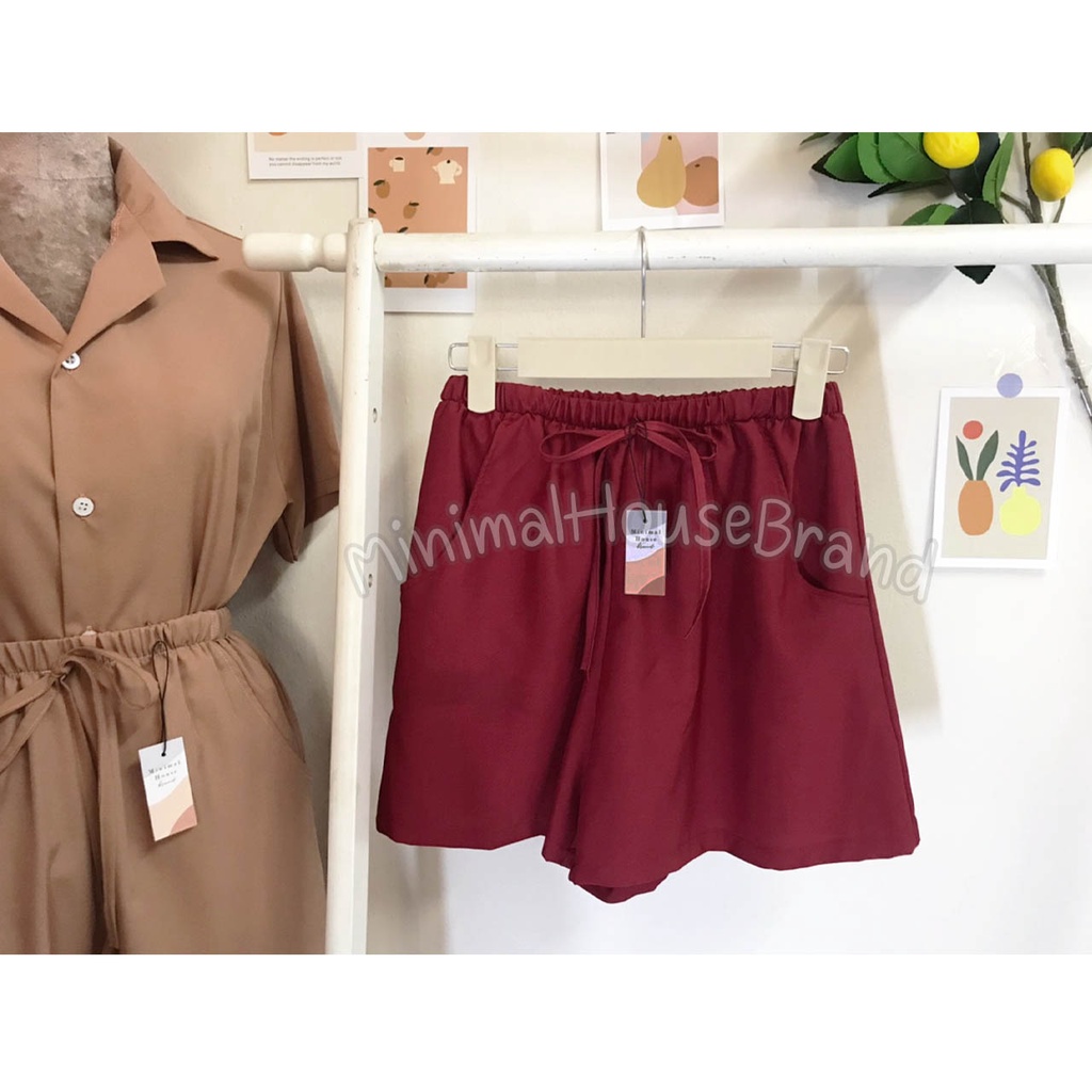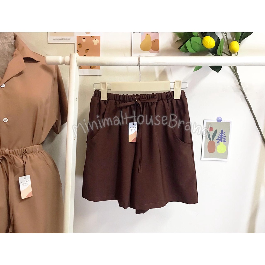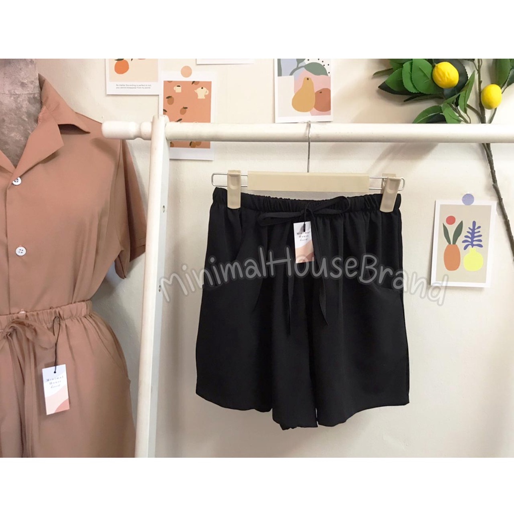 Minimalhousebrand กางเกงขาสั้นเอวสูง เอวยางยืดขนาดฟรีไซส์ ผ้าไหมอิตาลี่สีพื้นสไตล์เกาหลี