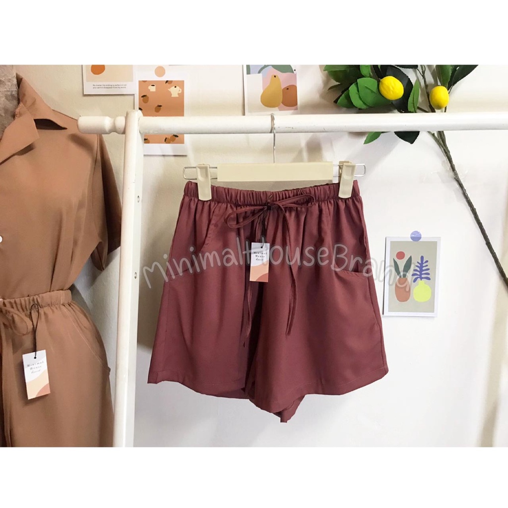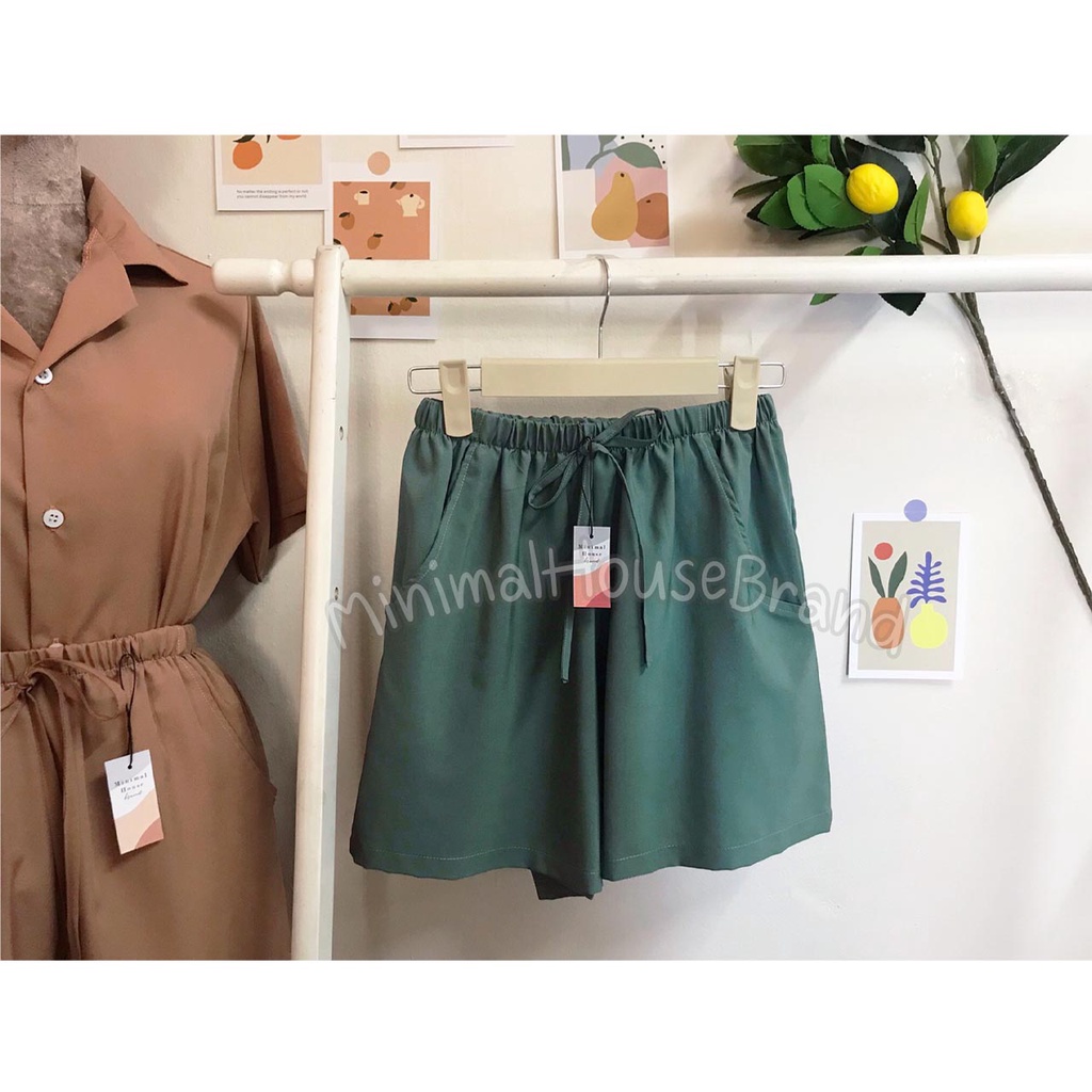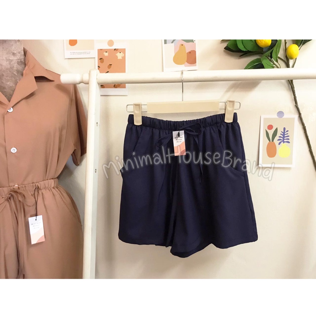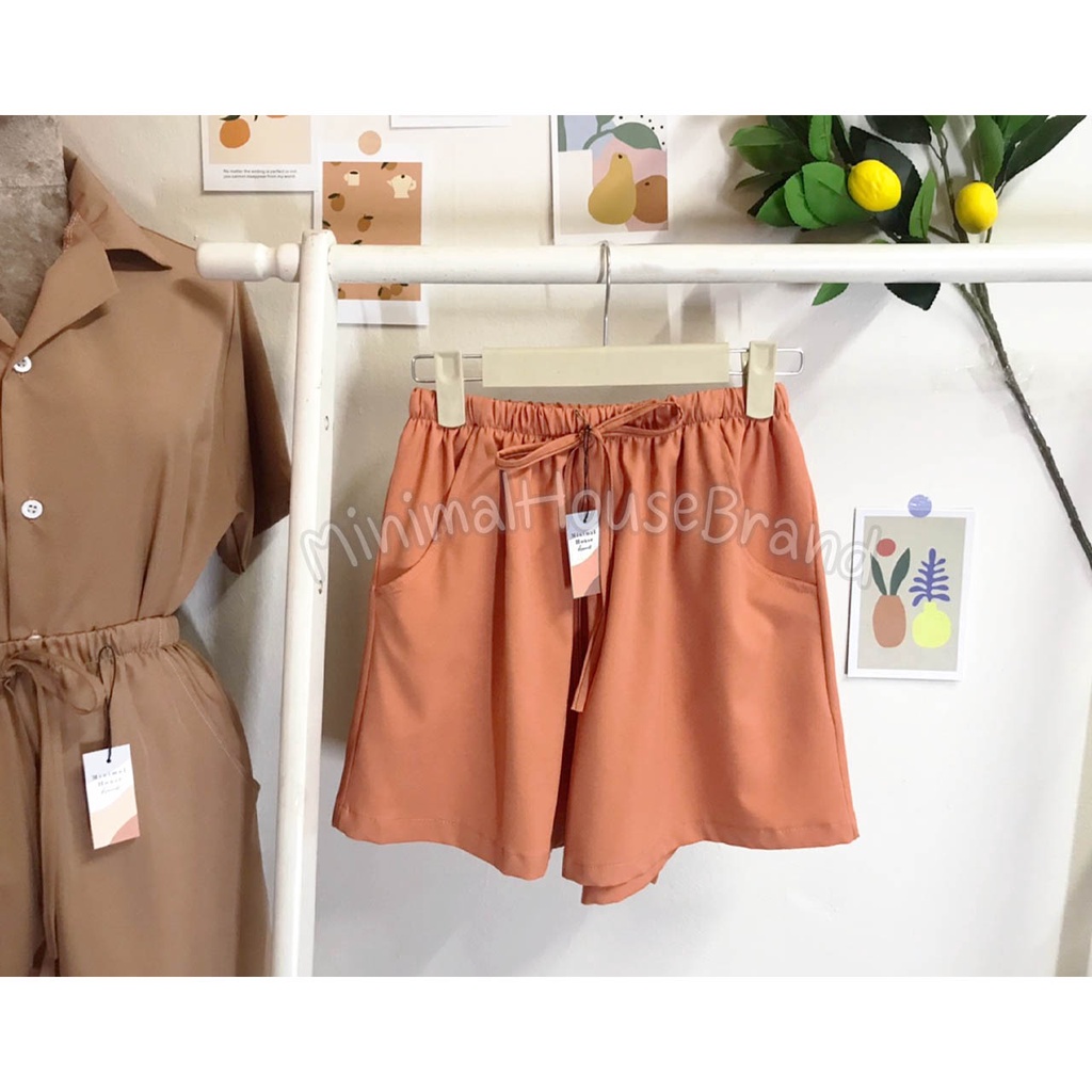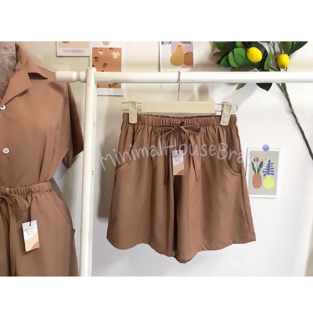 Minimalhousebrand กางเกงขาสั้นเอวสูง เอวยางยืดขนาดฟรีไซส์ ผ้าไหมอิตาลี่สีพื้นสไตล์เกาหลี