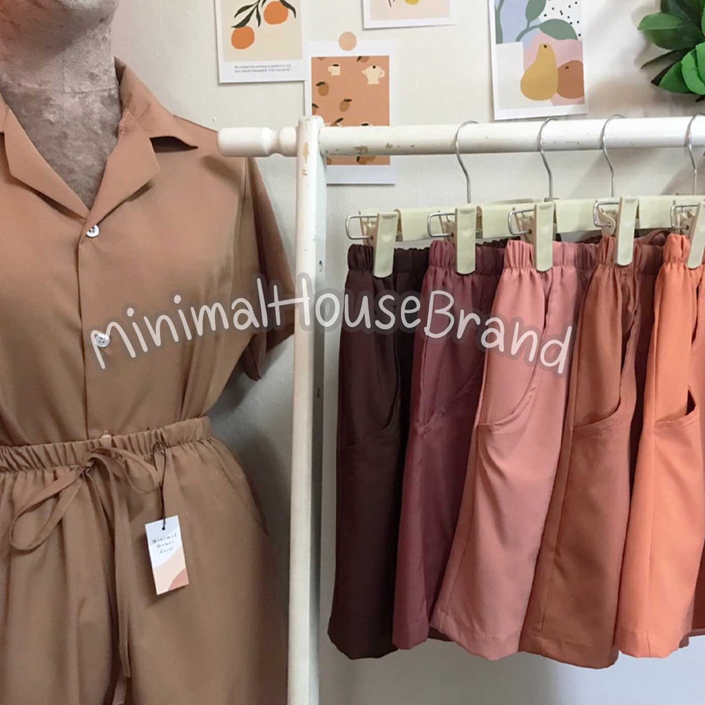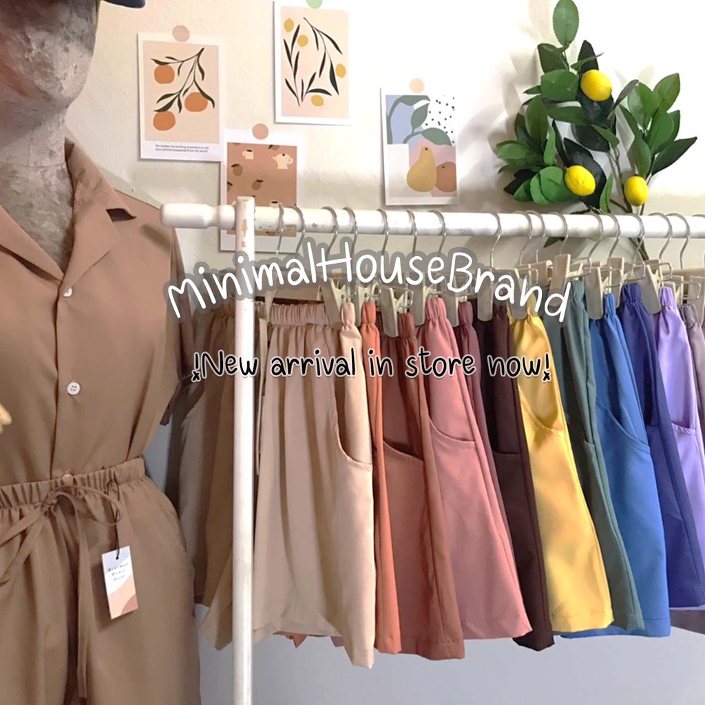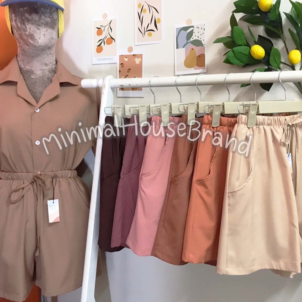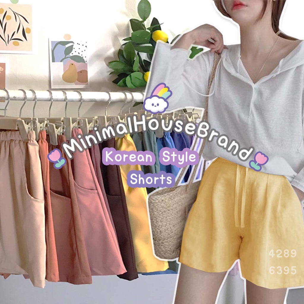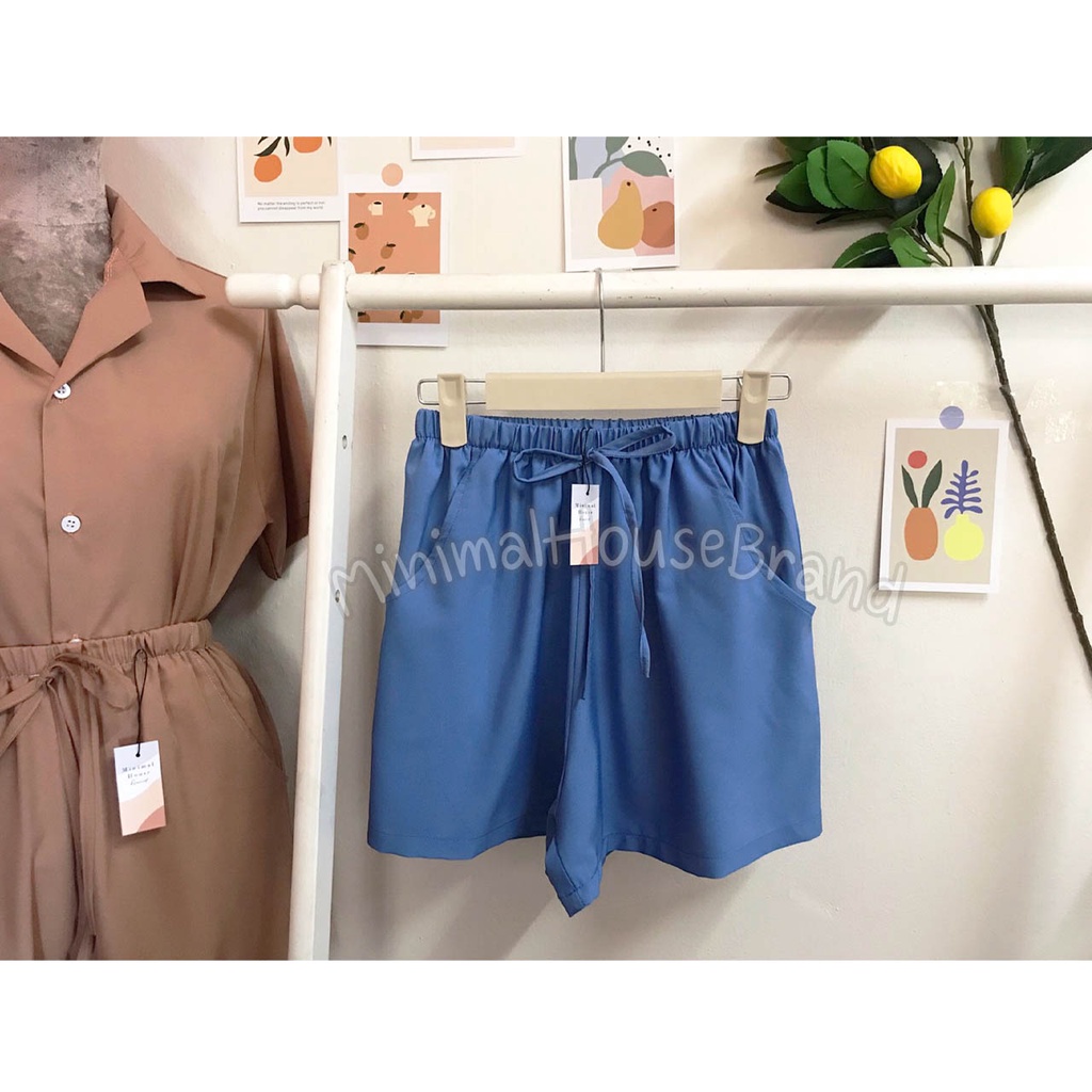 Minimalhousebrand กางเกงขาสั้นเอวสูง เอวยางยืดขนาดฟรีไซส์ ผ้าไหมอิตาลี่สีพื้นสไตล์เกาหลี