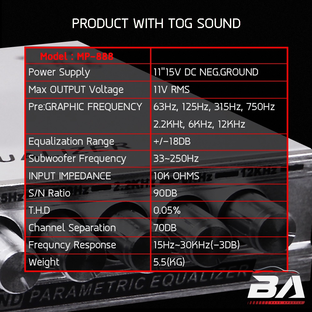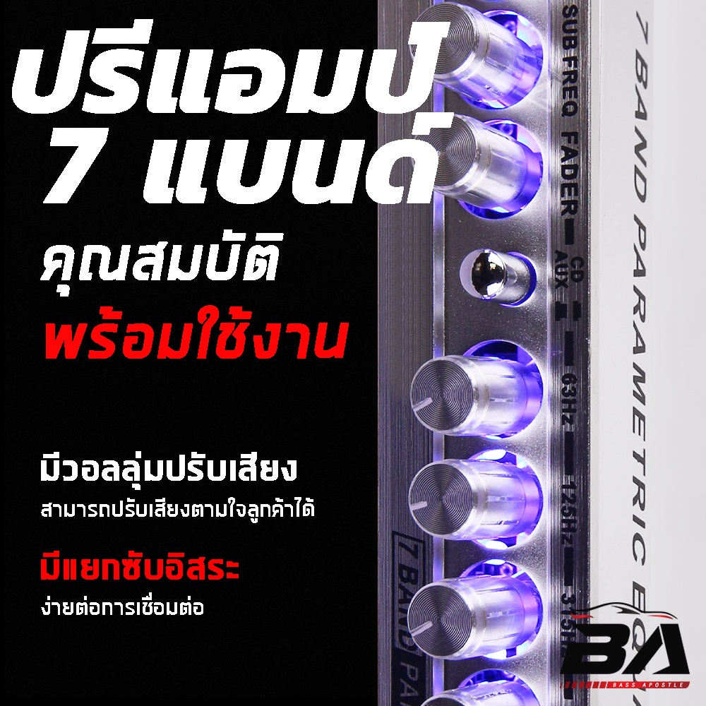 BA SOUND ปรีแอมป์รถยนต์ 7 แบนด์ BA-888 แยกซับอิสระ / วอลุ่มอลูมีเนียม / รับประกัน 1 ปี ปรีปรับเสียง ปรีแอมป์ติดรถยนต์