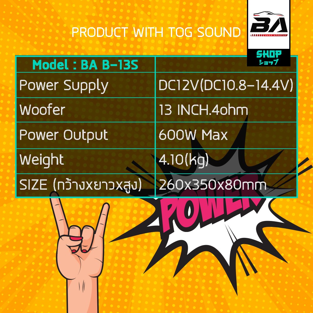 BA SOUND ซับบ็อกซ์ 12 นิ้ว BA-13S【วัดแนวทแยง 13นิ้ว หรือ 8x12 นิ้ว】 SUBWOOFER ตู้ลำโพงซับเบส ซับบ็อกซ์ใต้เบาะรถ บบ็อกซ์