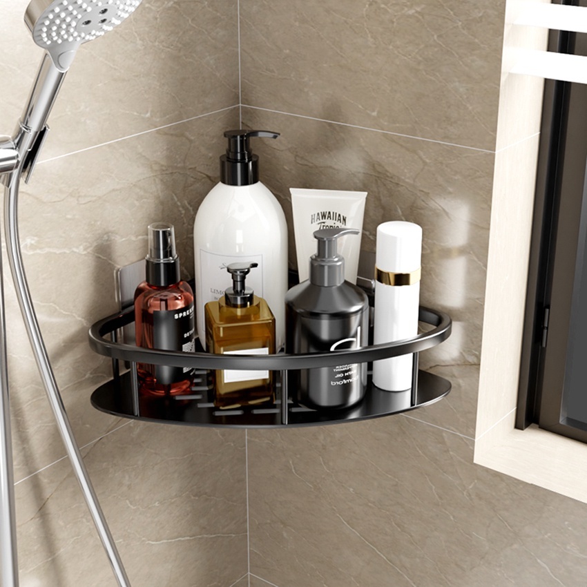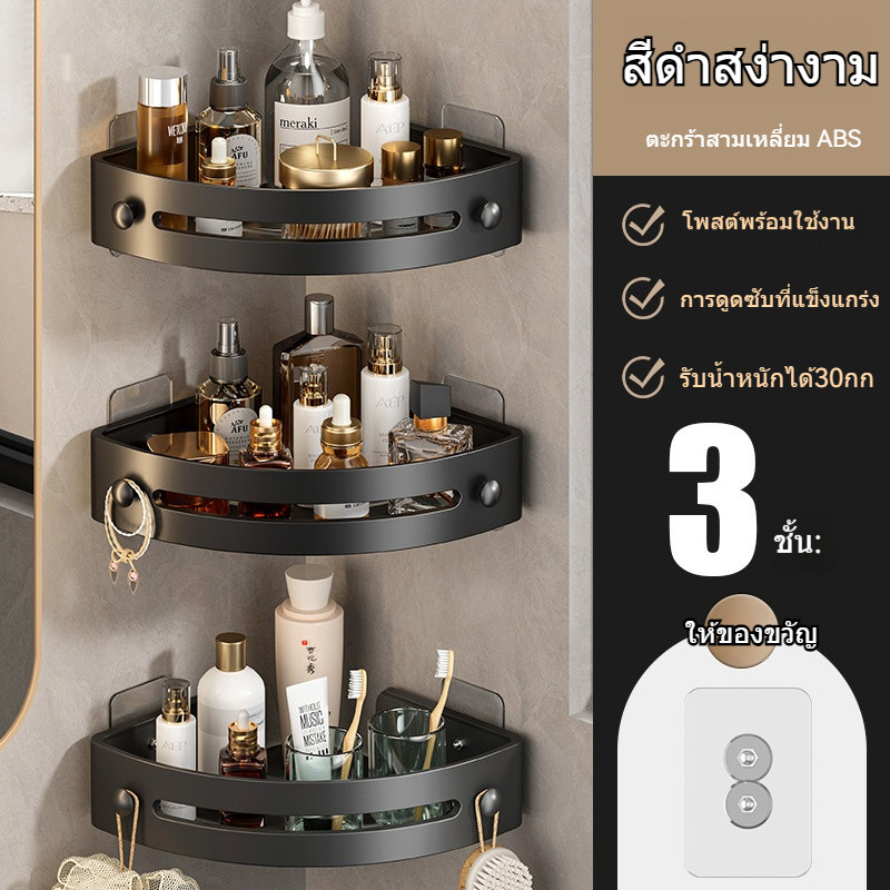 ชั้นวางของในห้องน้ำ ที่เก ็บของ ที่วางของในห้องน้ํา ในห้องน้ำ เข้ามุม ชั้นอลูมิเนียมติดผนัง ห้องครัว ไม่ต้องเจาะ ติดตั้ง