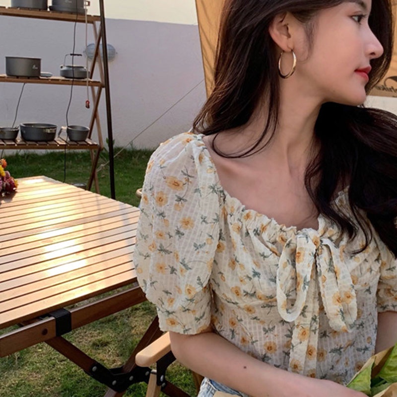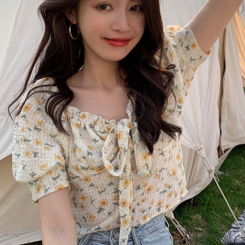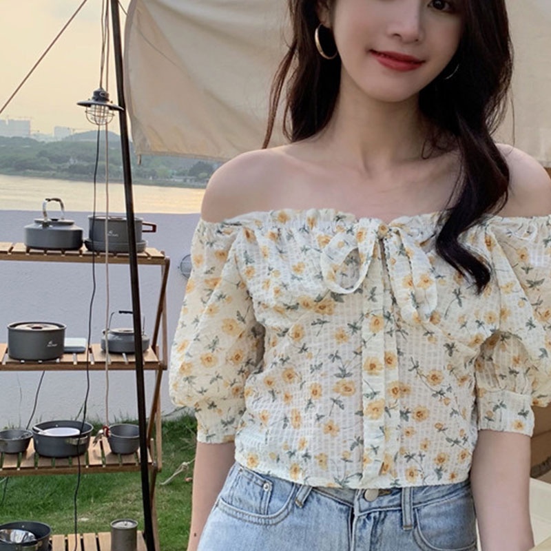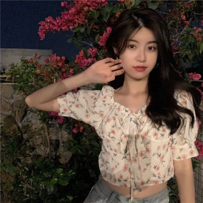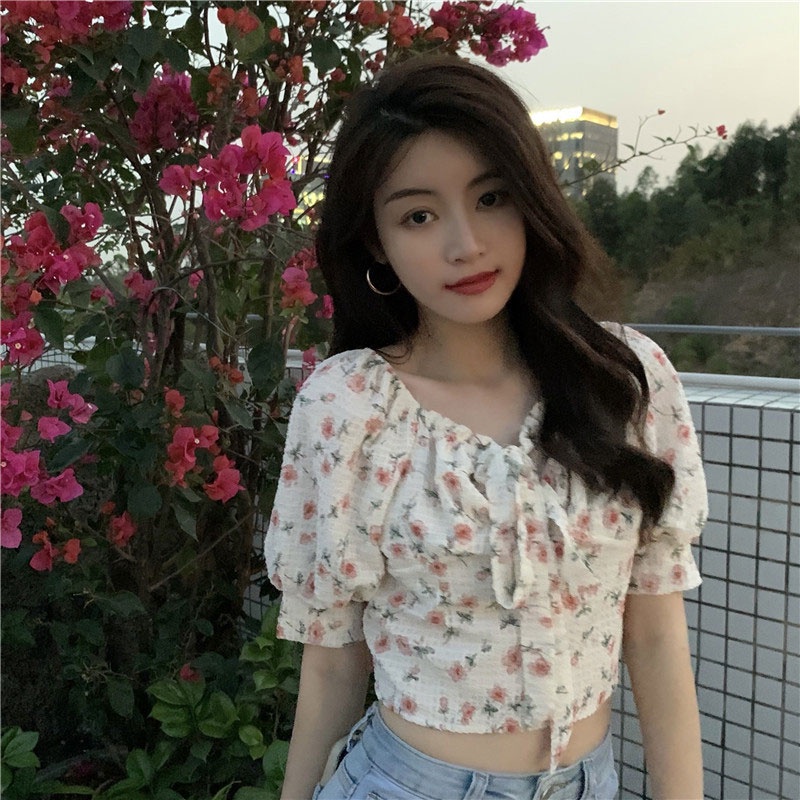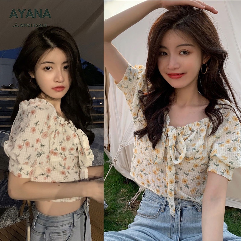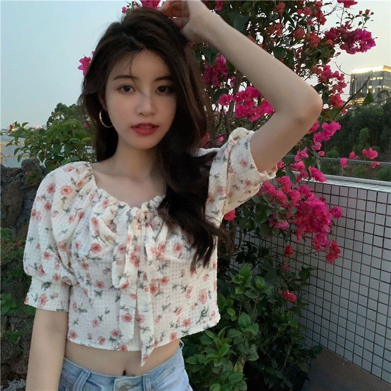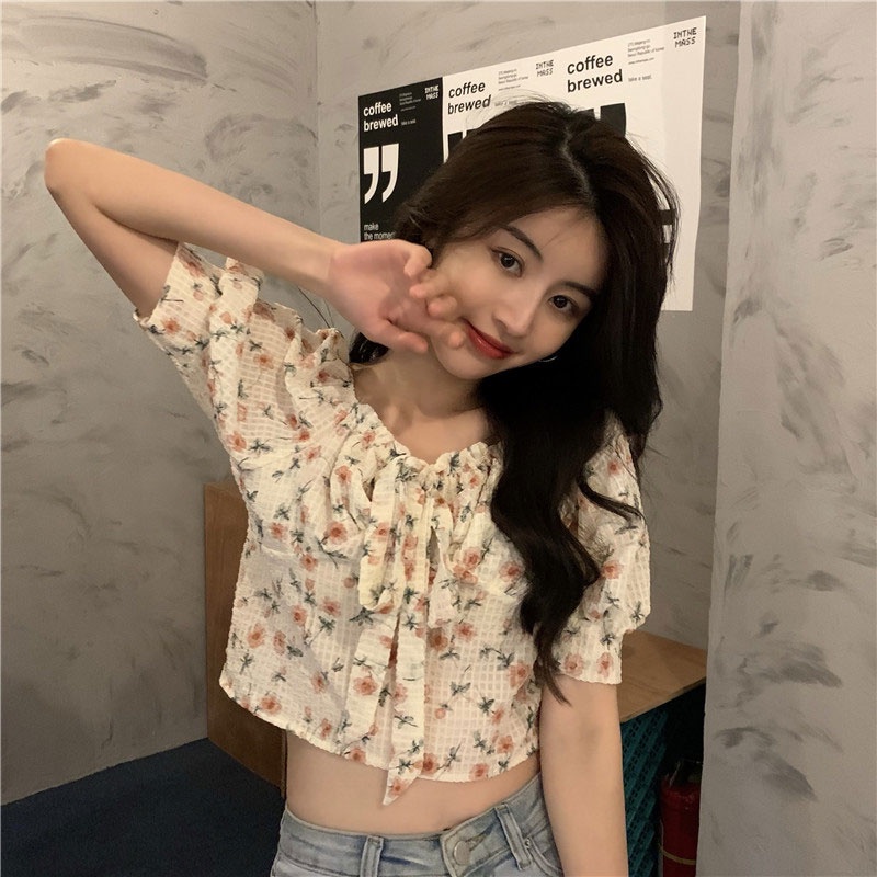 เสื้อครอปมินิลายดอกไม้มี2สีให้เลือกราคาโปรโมชั่น