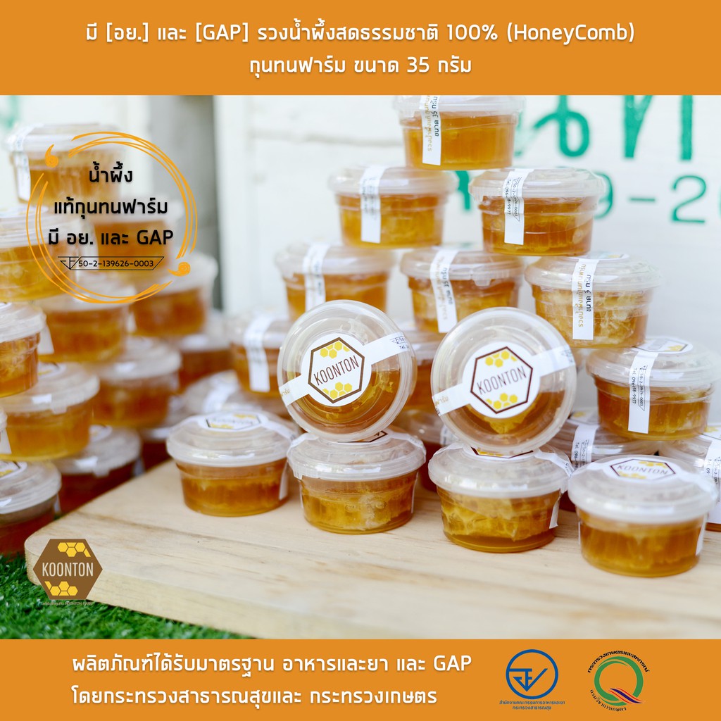 รวงผึ้งแท้ 35 กรัม มี [อย.] และ [GAP] รวงน้ำผึ้งสดธรรมชาติ 100% (HoneyComb) กุนทนฟาร์ม