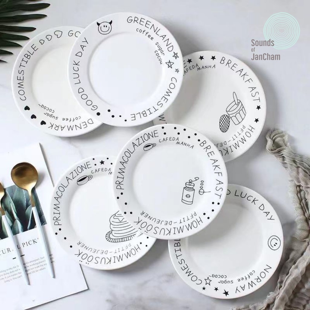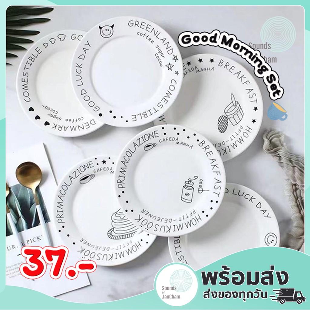 จาน☀GOOD MORNING☀ จานมินิมอล สไตล์เกาหลี🎌 ขนาด 8 นิ้ว วัสดุเซรามิก เกรดดีที่สุด ราคาพิเศษ!!