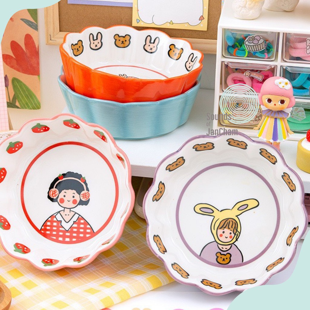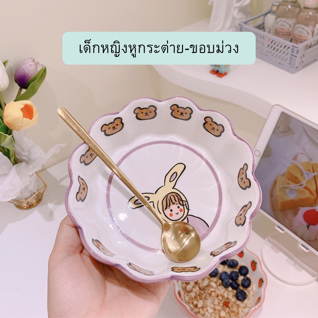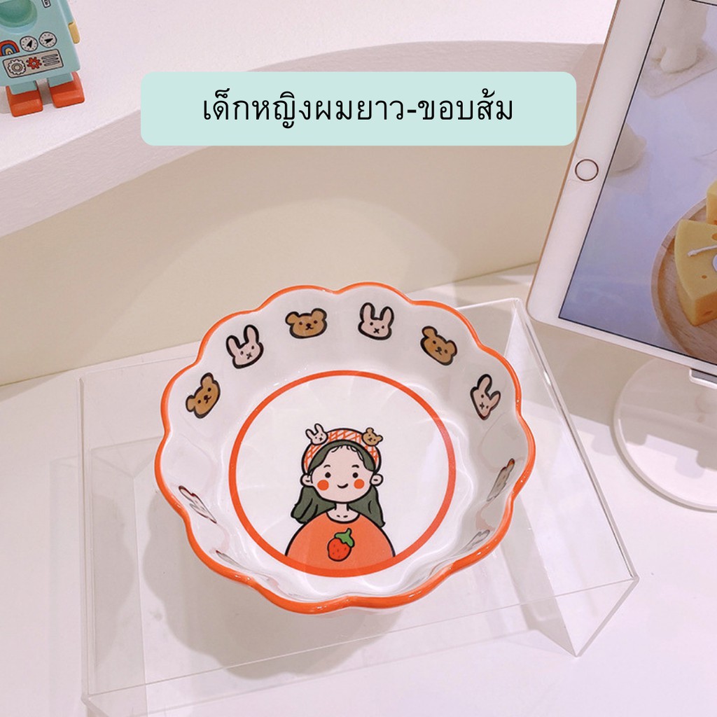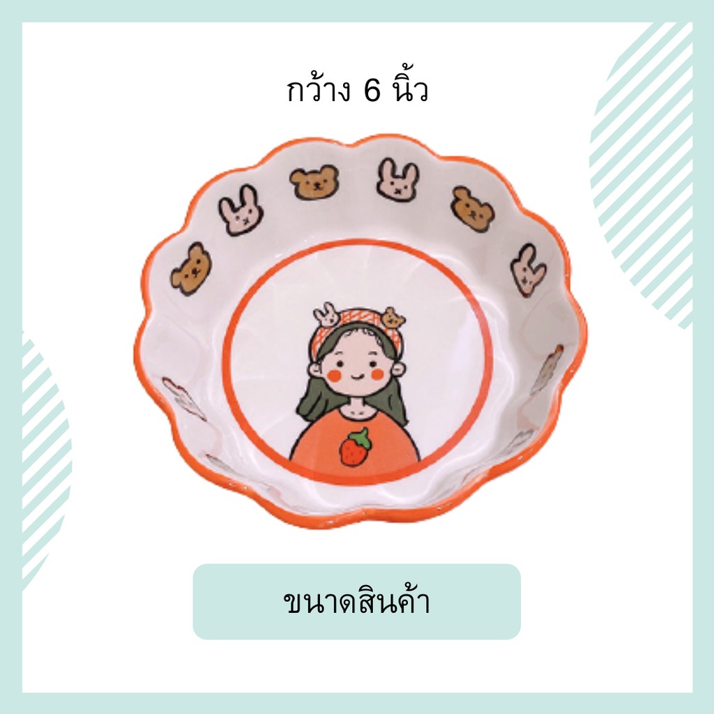 [ใหม่!] ราคาพิเศษ📍ชามเซรามิก,ชามเด็กหญิง,ชามใส่อาหาร ขนาด 6 นิ้ว ขอบหยัก ตกแต่งสีสันสุดน่ารัก สไตล์เกาหลี 🥨🥣