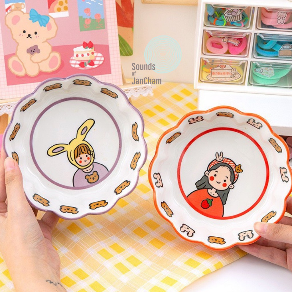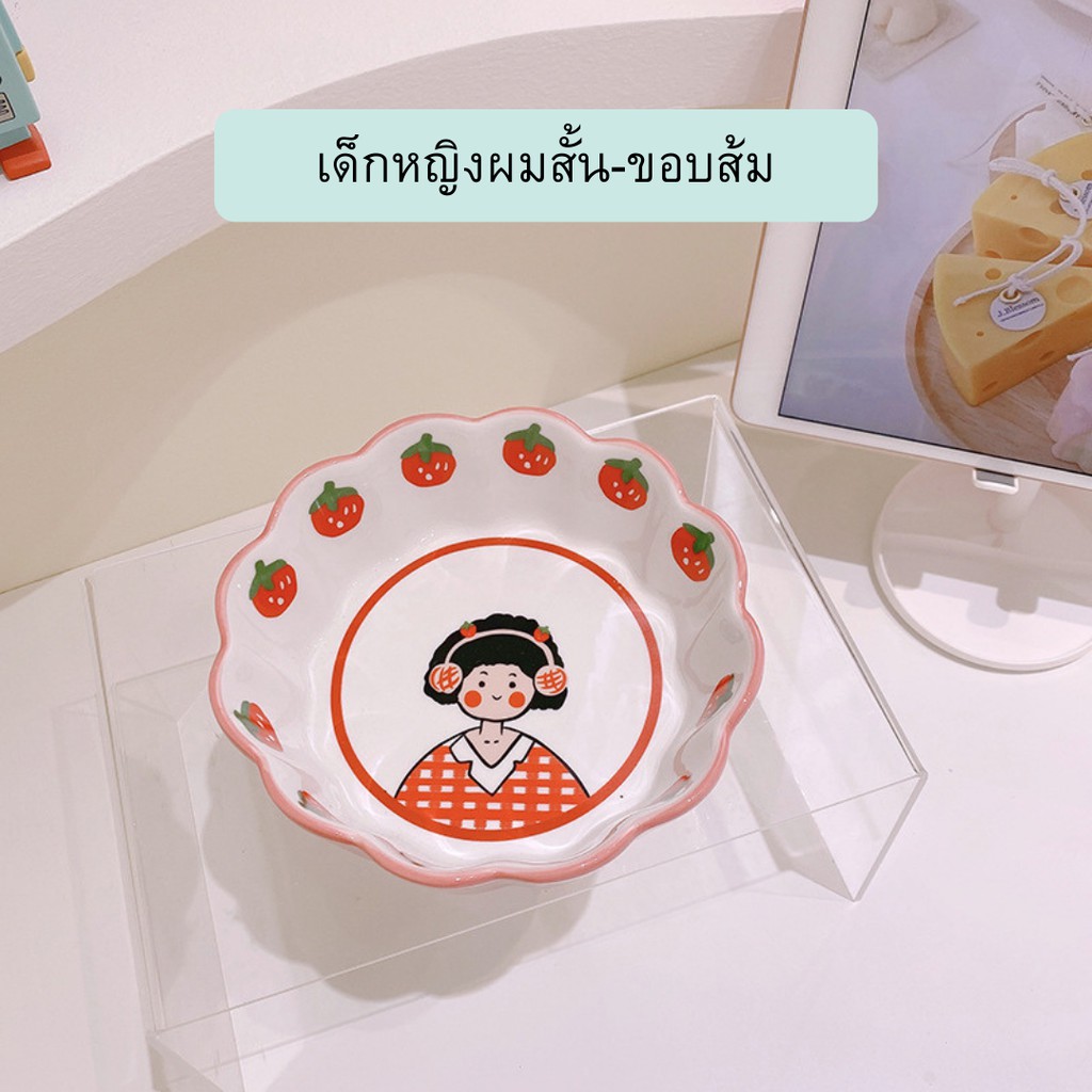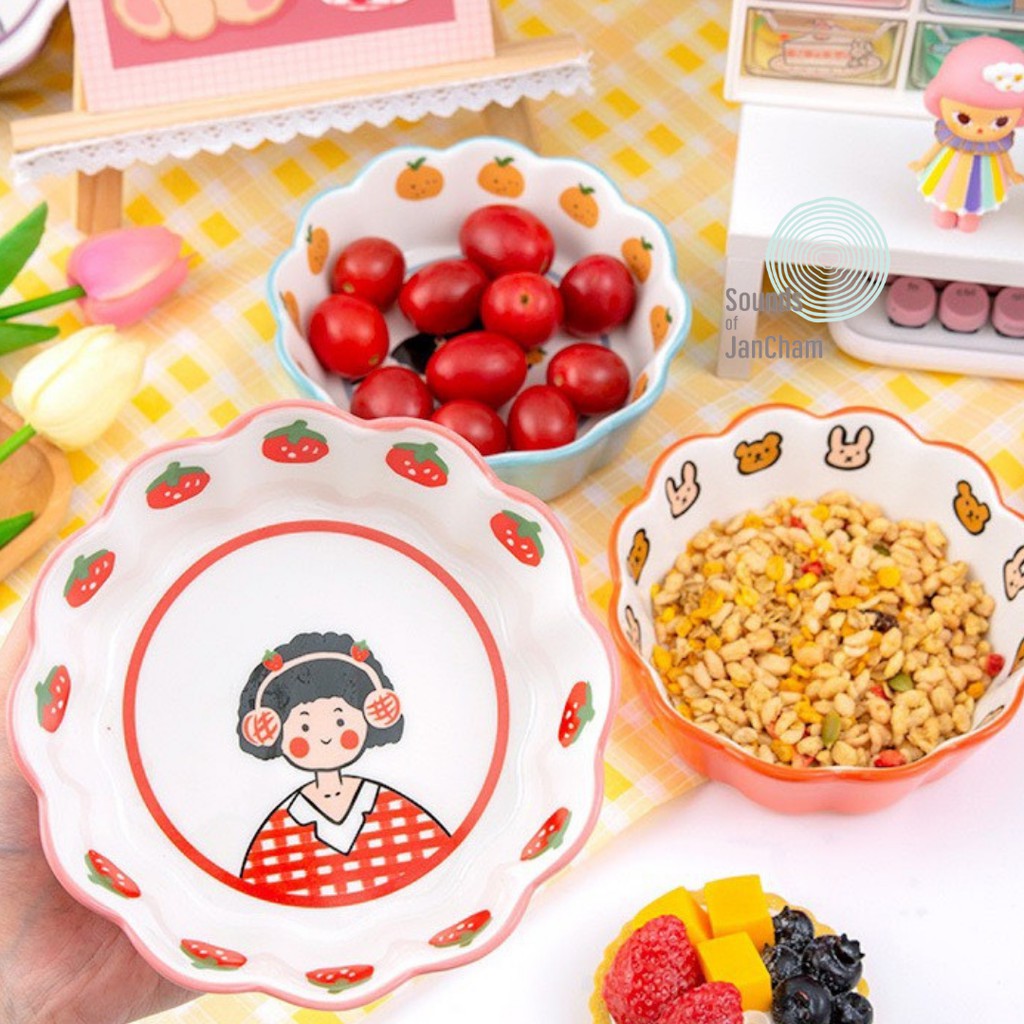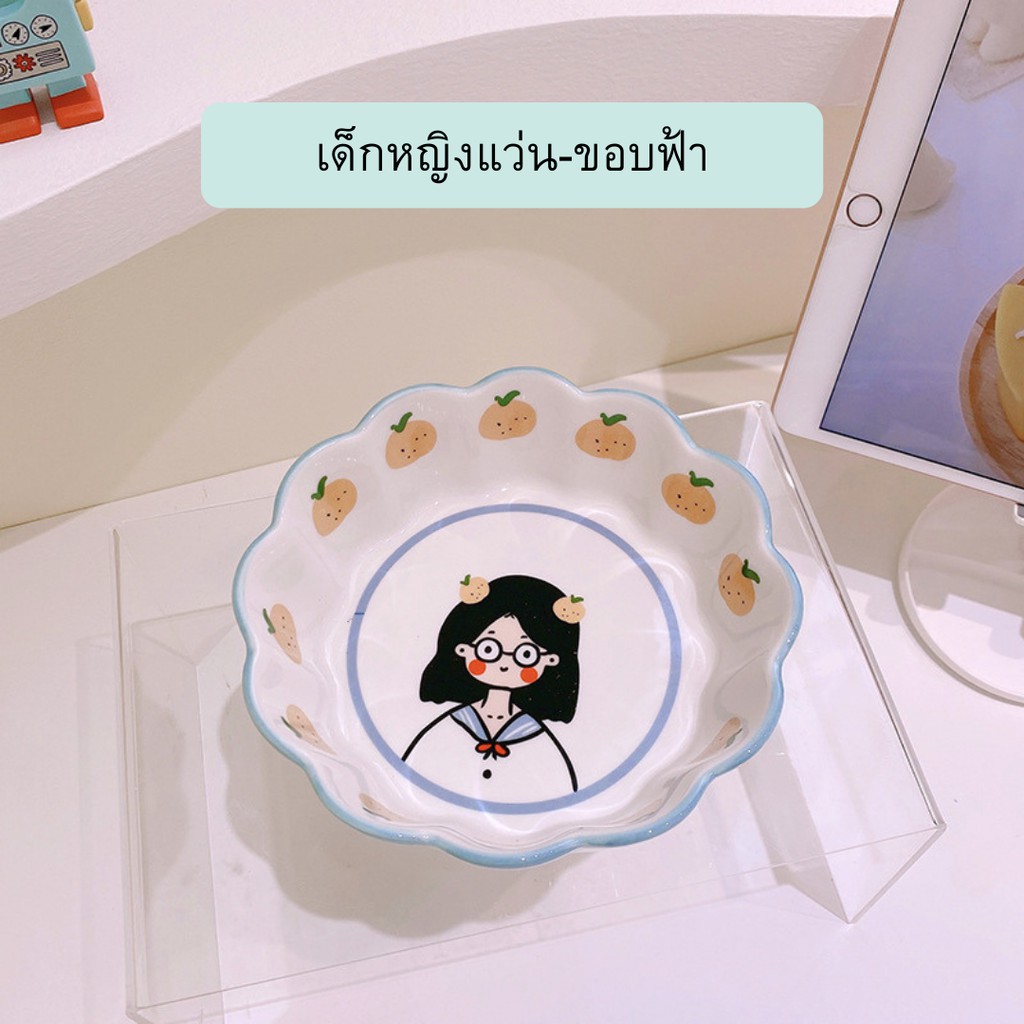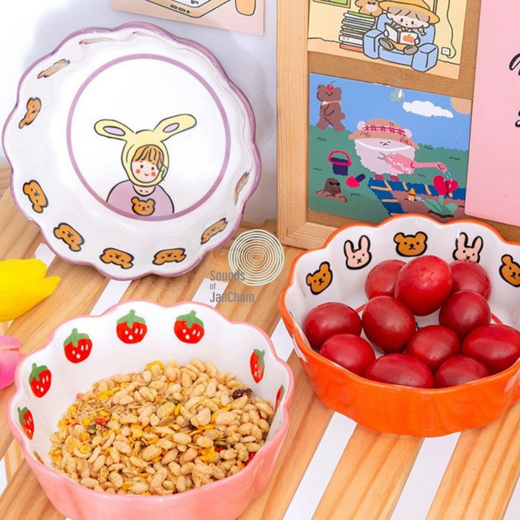 [ใหม่!] ราคาพิเศษ📍ชามเซรามิก,ชามเด็กหญิง,ชามใส่อาหาร ขนาด 6 นิ้ว ขอบหยัก ตกแต่งสีสันสุดน่ารัก สไตล์เกาหลี 🥨🥣
