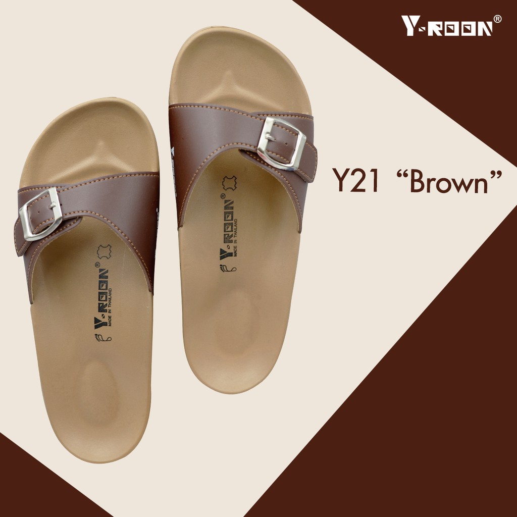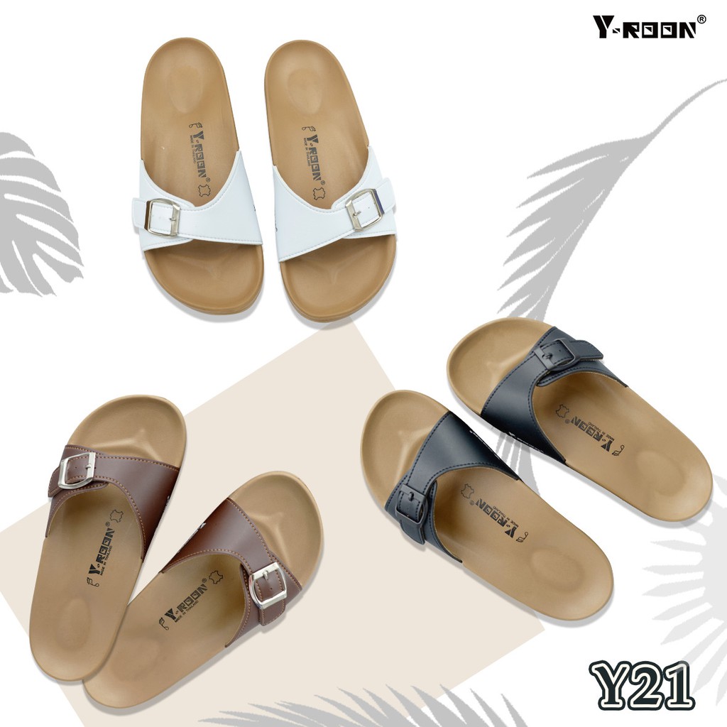 รองเท้าแบบสวม Y-Roon รุ่น Y21 ทรงไบเก้นปรับสายรองเท้าได้ หน้าเข็มขัด สำหรับคนหน้าเท้าใหญ่ เล็ก