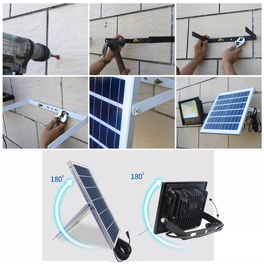 KKSKY ไฟโซล่าเซลล์ สว่างอัตโนมัติเมื่อฟ้ามืด 100000W กันน้ำ ป้องกันฟ้าผ่า solar light IP68 รีโมทคอนโทรล สปอร์ตไลท์ LED