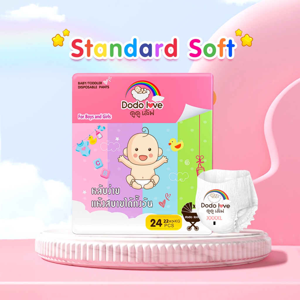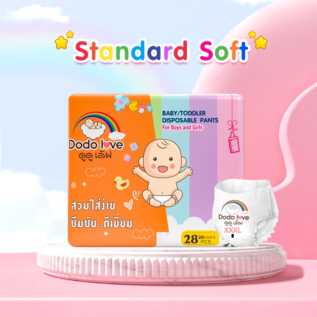 DODOLOVE Standard Soft กางเกงผ้าอ้อม (แพ็คเดี่ยว) Size NB - 4XL นุ่ม บางเบา ใส่สบาย
