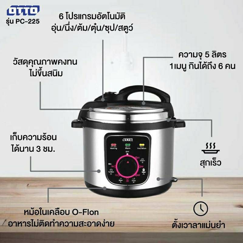 🔐 Barter Code CH75MJ ส่วนลด 15% สูงสุด 30.- ช้อปขั้นต่ำ 0.-OTTO หม้อแรงดันไฟฟ้า นึ่ง ต้ม ตุ๋น ขนาด 5 ลิตร PC-225