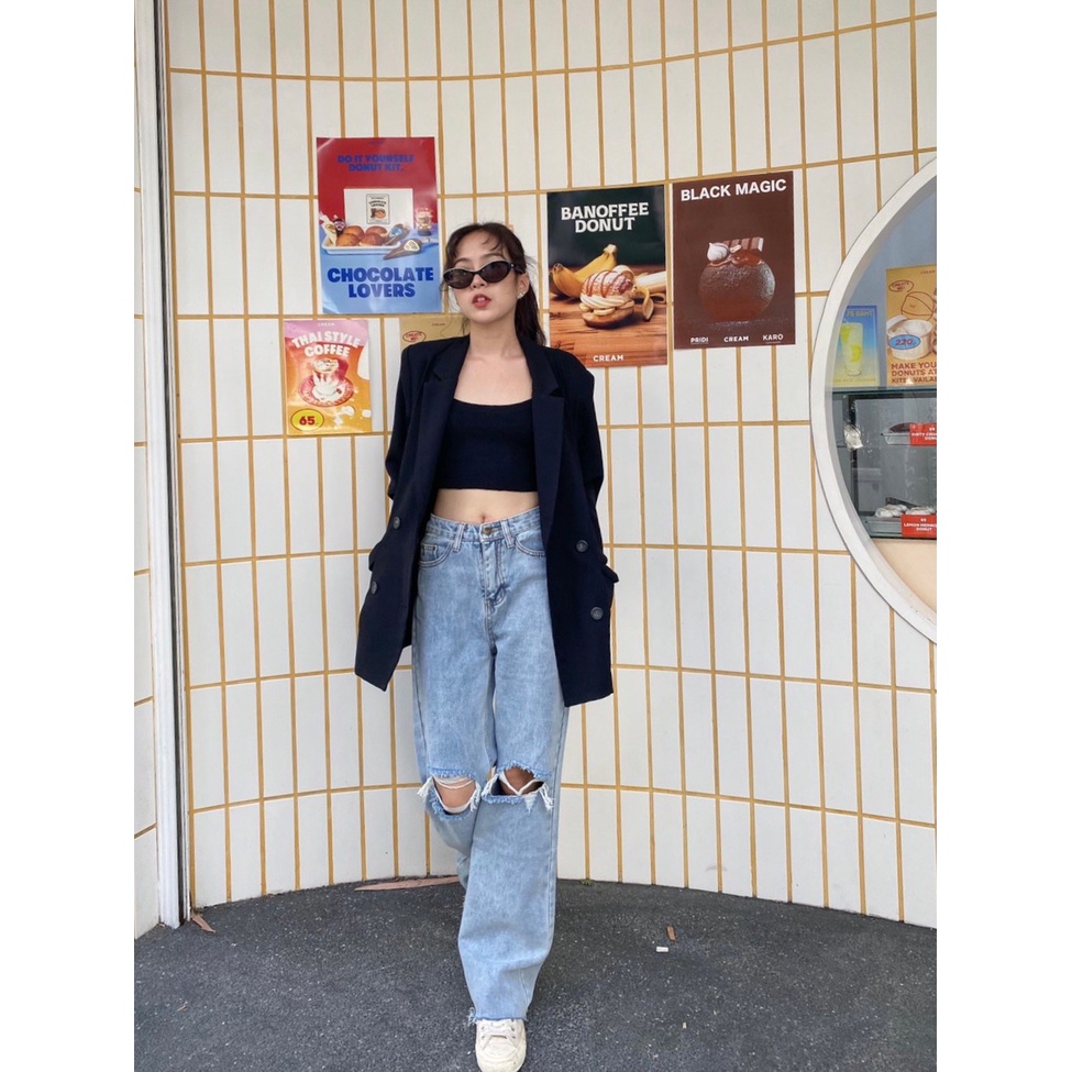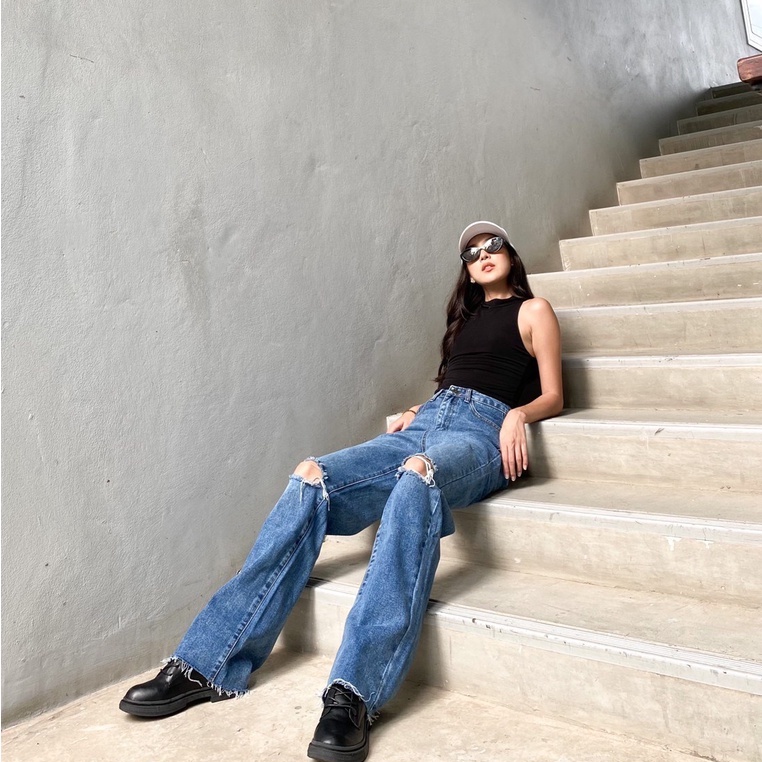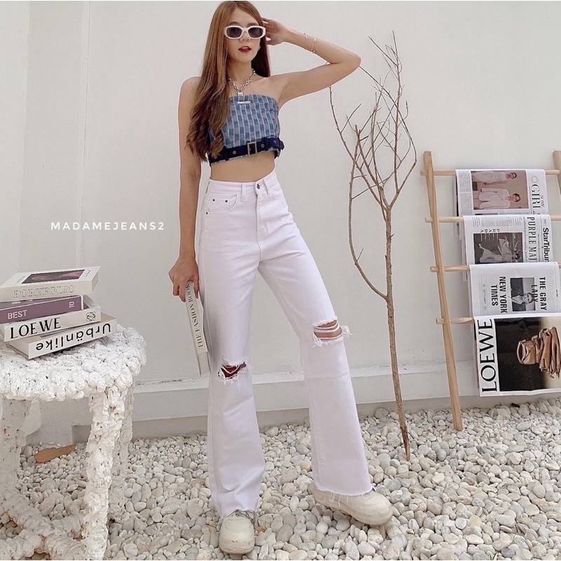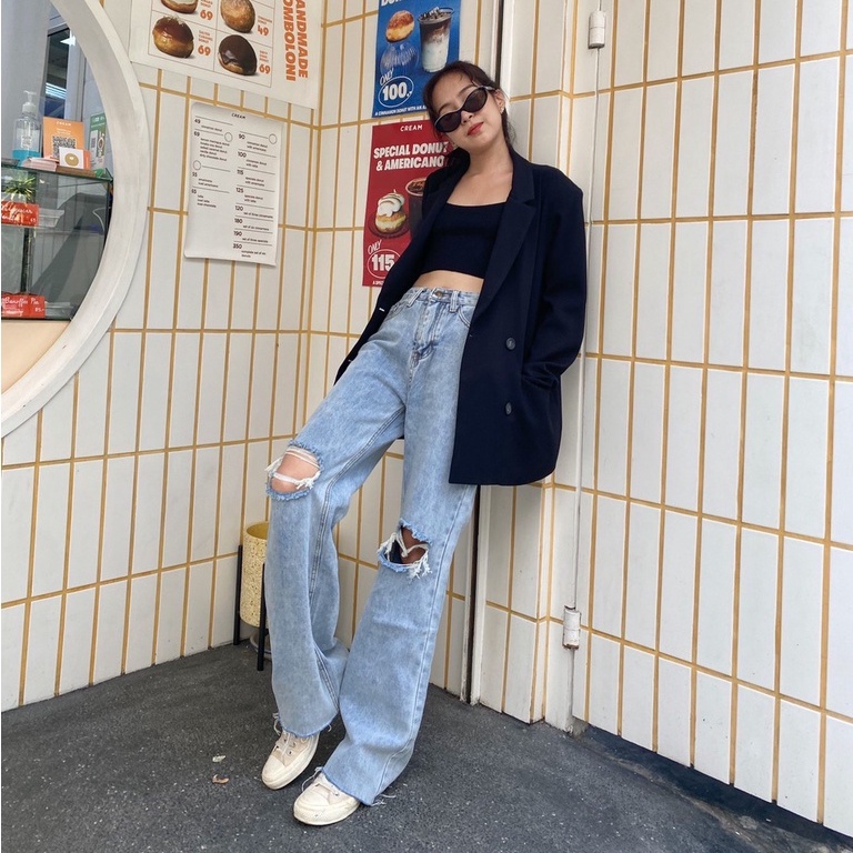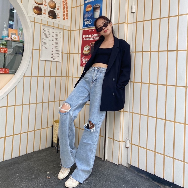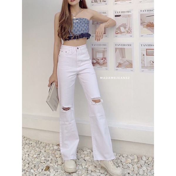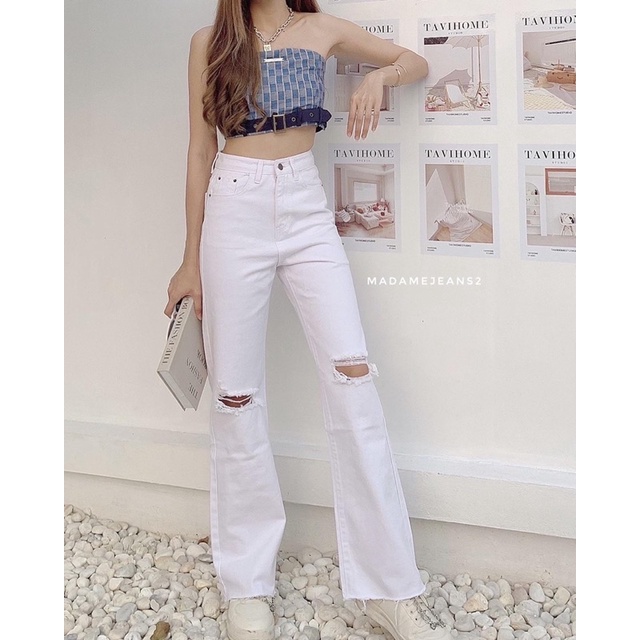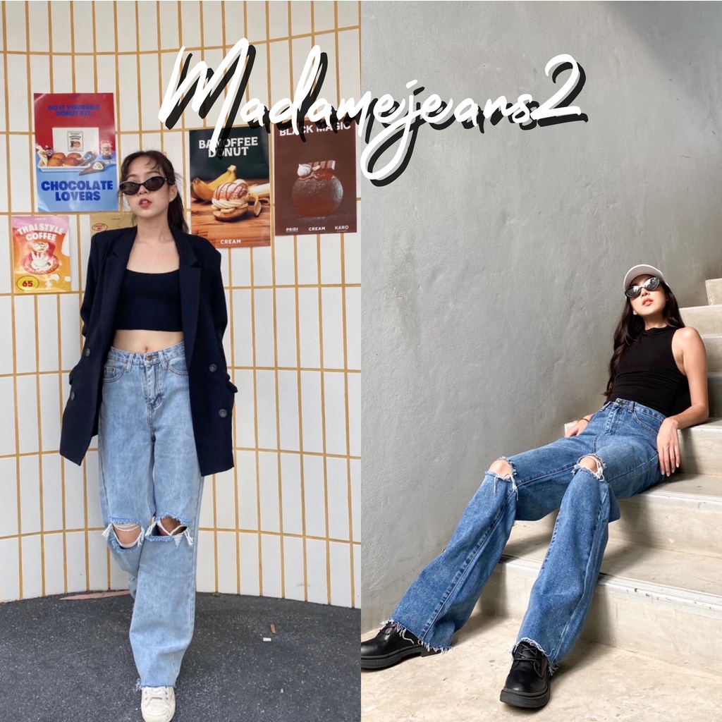 [พร้อมส่ง ]รุ่น Misssir❤️ สีเข้ม / สีอ่อน กางเกงยีนส์ขากระบอก แต่งขาด แฟชั่นเกาหลี