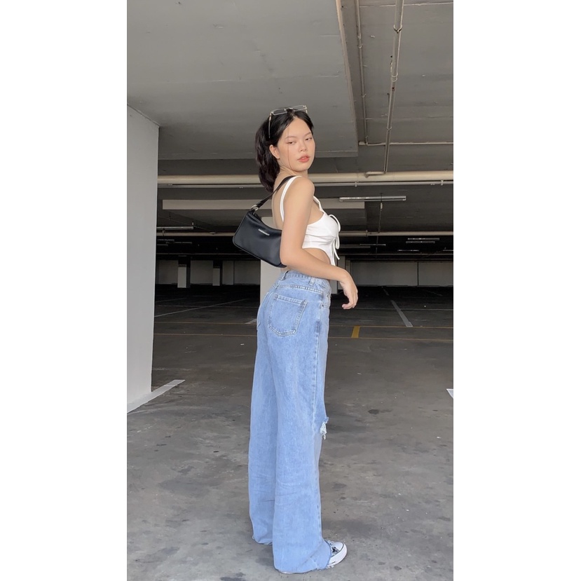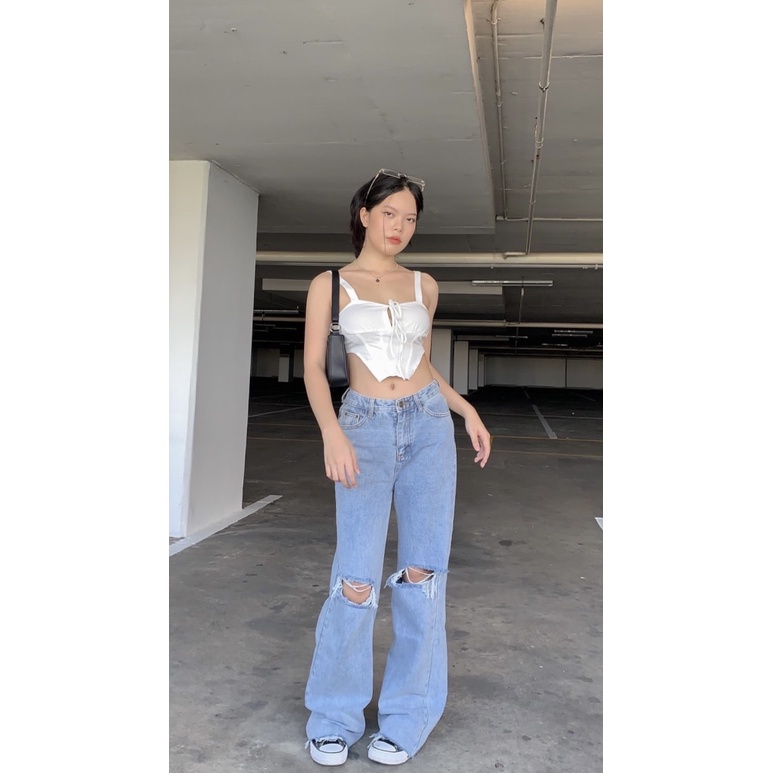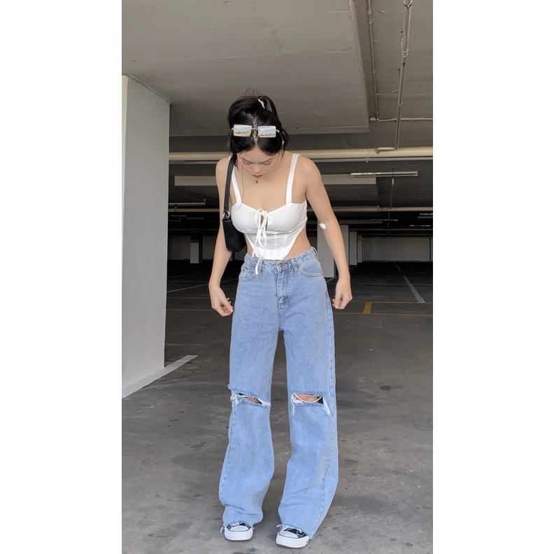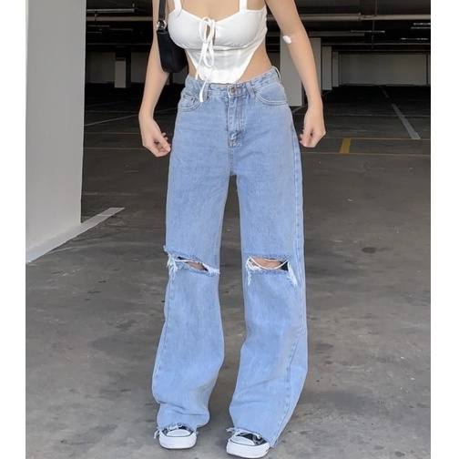 รุ่น misssir jeans [รุ่นฮิตสีสวยมากก สียีนส์อ่อนแต่งขาดเก๋ๆ สียีนส์ฟอกอ่อนแต่งขาด กางเกงยีนส์ขายาว ขากระบอก]